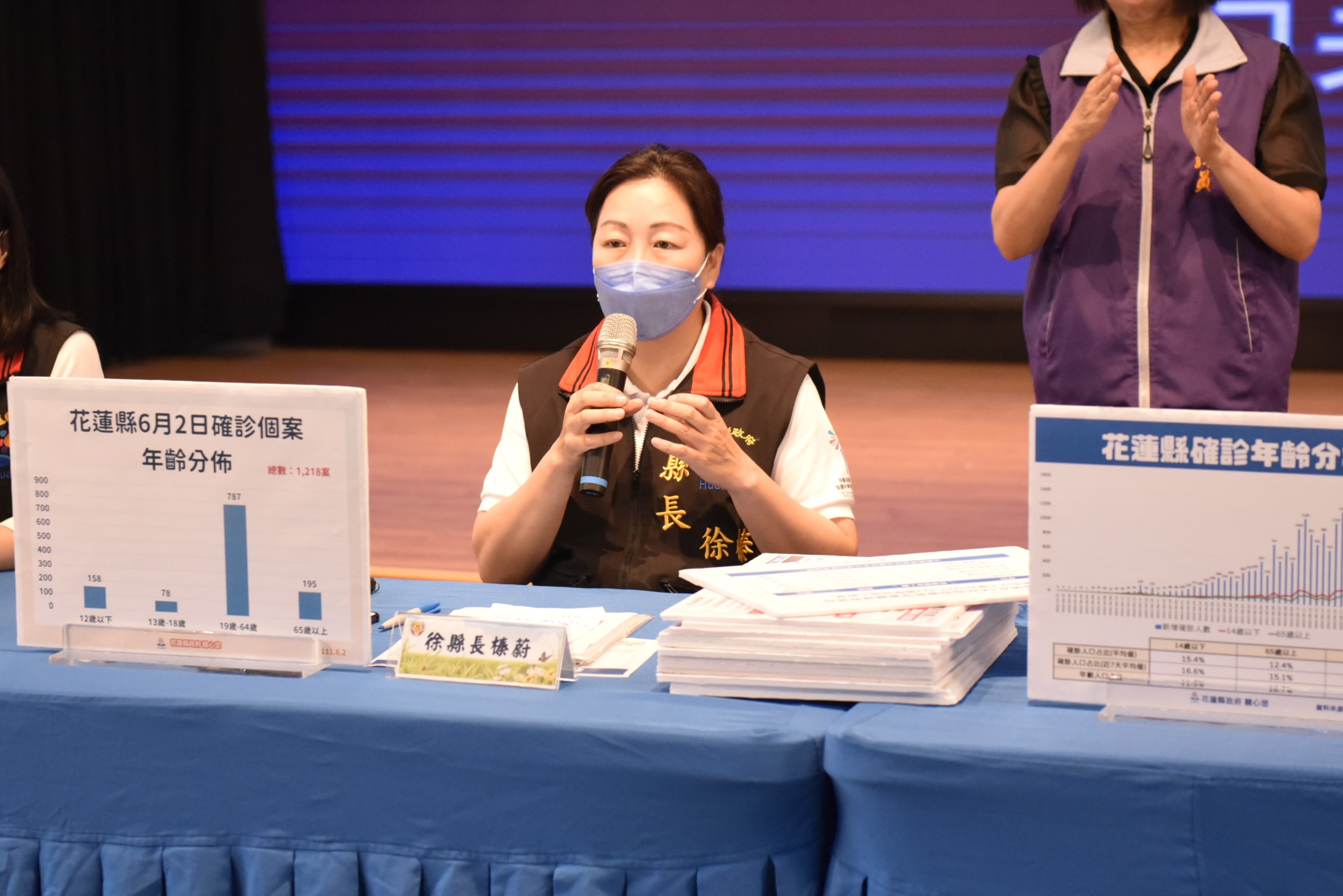 花蓮縣政府今(2)日召開疫情說明記者會,縣長徐榛蔚除了公告高中以下(含公私立幼兒園)暫停實體課程,調整為線上教學延至6月8日之外,同時也呼籲鄉親,端午連假將至,非同住家人請盡量不要群聚用餐,做好防疫工作,保護妳我的健康,共渡端午佳節。