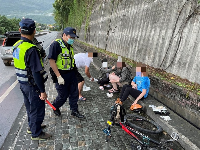 端午假期 外籍民眾因道路濕滑騎自行車不慎自摔 警民合作協助包紮