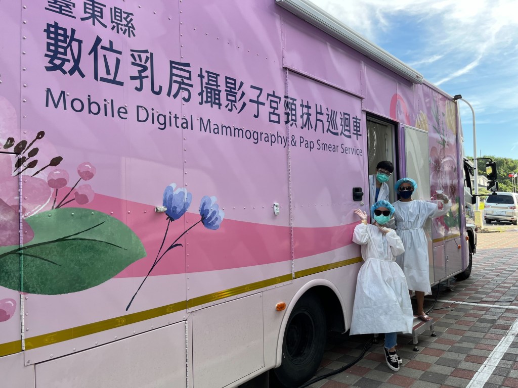 衛生局指出,臺東馬偕醫院、臺東基督教醫院、衛生福利部臺東醫院等3家醫院設有乳房X光攝影儀器,另外,臺東縣幅員遼闊,縣府持續推動乳房攝影巡迴車服務,深入偏鄉及村里,在全縣16鄉鎮市跑透透。因乳癌發生有年齡層下降趨勢,臺東縣從109年即首創全國,推動乳房攝影檢查提前從40歲開始,2年來縣內共有2,801位40-44歲女性完成檢查,涵蓋率達到此年齡層的30%,共發現異常有214位(陽性率7.6%),其中確診為乳癌者5位,均是無症狀以早期(零期及1期)發現為主,透過在地化治療機制,節省金錢花費及交通往返時間,現均治療完成並持續追蹤。去年因疫情導致服務受到影響,但這3年來仍出勤668場次,服務共達8,722人次。
