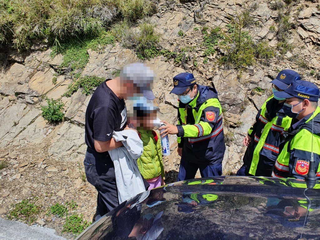正在台14甲線37K執行交通疏導的花季員警獲報後,立即前往救護,幸好石男父女就在花季員警旁500公尺開外,員警僅僅花了3分鐘就找到石男父女,經初步了解狀況,遂即拿出氧氣隨身瓶供小妹妹吸氧,並立即搭載父女倆前往停車處,請石男立即載送女兒下山,以減緩高原反應。