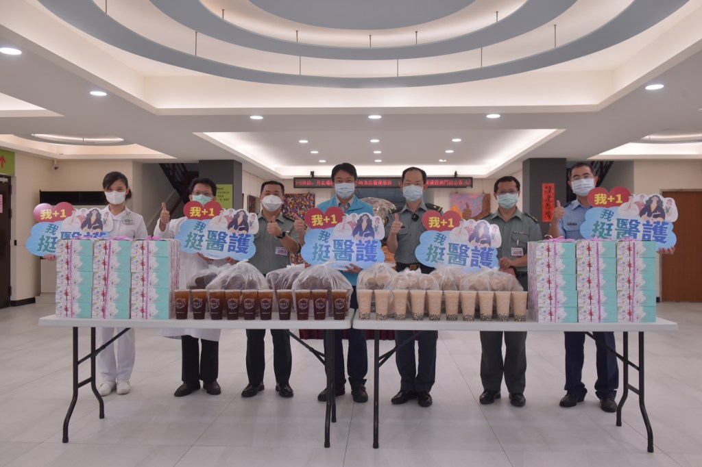 魏市長第二站來到805國軍花蓮醫院,少將戴明正院長也偕同副院長曾豐仁、護理部主任洪愛琇以及醫療部主任許桓銘到場感謝花蓮市公所的暖心善舉;戴院長說,非常感謝魏市長特別撥空來到805醫院關心我們所有的醫護夥伴,讓大家非常感動;805醫院也戮力配合各項中央防疫政策,從一開始的疫苗接種工作到PCR篩檢作業,目前也開設專責病房收治確診病患等階段性任務,每一位醫護同仁都堅守崗位,不眠不休地付出,相信在大家的努力之下,能讓疫情早日趨緩,恢復正常生活。