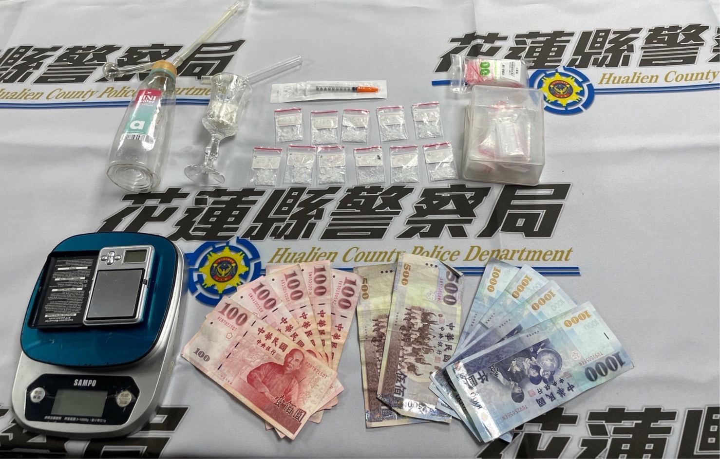 花蓮縣警察局玉里分局平日積極維護社會治安,防止不法行為在轄區發生,尤其對於毒品等犯罪強力掃蕩,並不因疫情有所鬆懈,玉里分局偵查隊展現掃毒決心,針對不法態樣查緝蒐證;於5日晚間19時許時機成熟持花蓮地方檢察署所核發之拘票前往執行拘提范嫌,經現場附帶搜索,在其房內查獲安非他命8小包、磅秤、交易現金新臺幣5000多元許、吸食器及分裝袋各1批;另其中1名在場人隨身包內查獲安非他命3小包。