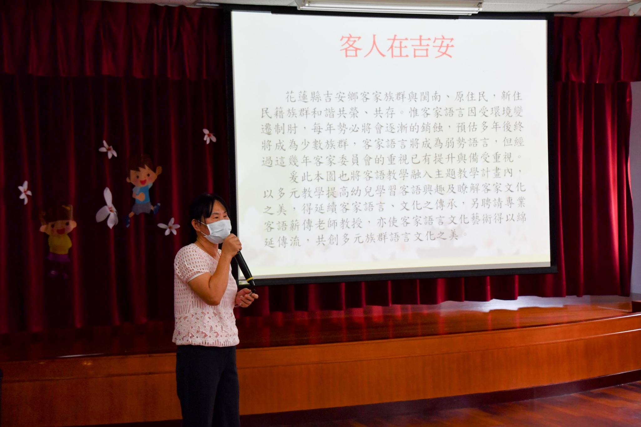 游淑貞感謝訪視委員們對吉安團隊的肯定,她表示,客語學習帶給吉安鄉幼幼寶貝們認識自我文化的機會,同時也帶領學童們站上全國性展演舞台,於109年參與全國中小學客語藝文競賽獲東區初賽特優,並代表角逐全國總決賽,榮獲幼兒園組客語口說藝術類全國第二名的佳績,去年度雖因疫情改由線上公開發表展示學習成果,但仍帶給孩子們聽、說、唱、習客語的自信心與成就感。