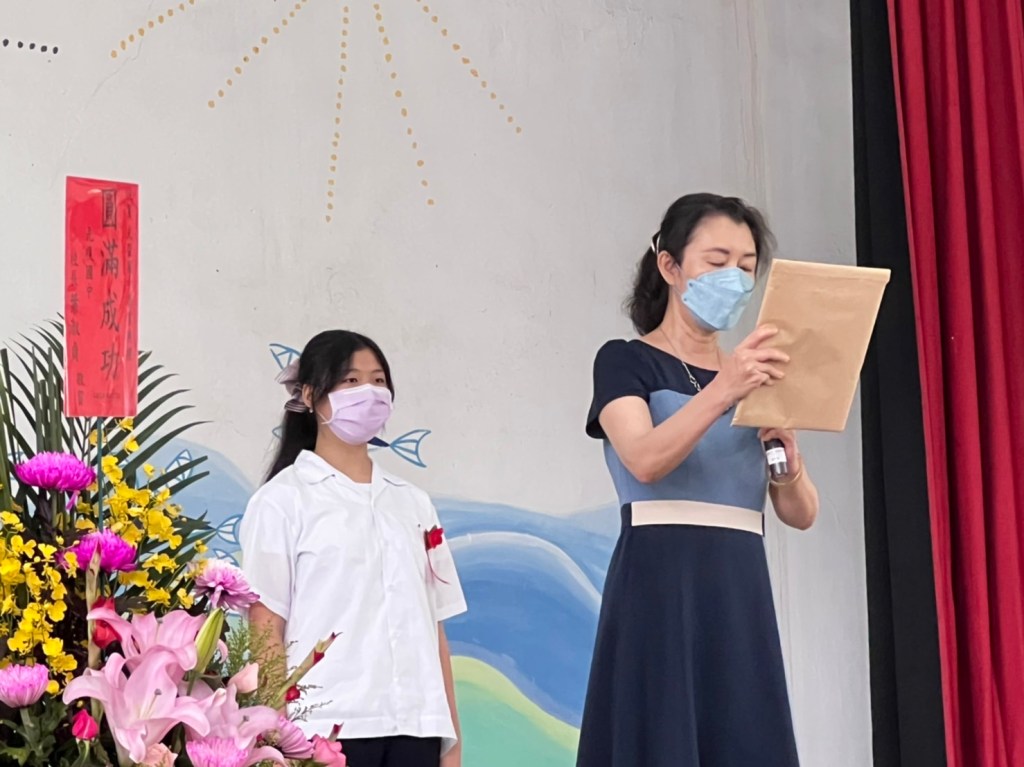 最後一個獎項〜教育會考優良獎,是畢業典禮當天早上才印製獎狀與準備獎品。今年會考成績恰在畢業典禮早上八時統一公佈,為鼓勵同學們三年努力參加國中教育會考表現優良的同學,也期待未來的學弟妹們能以學長姐為榜樣再創佳績,因此特別頒發該獎項,獲獎同學計有901劉佳恩:國文A+英文A、902陳妤涓:英文A+數學A、902陳柏蓁:國文A、903曾莯𦭵:英文A。其中,曾莯𦭵是體育班棒球隊的學生,能兼顧運動專長與學業,更是難得。