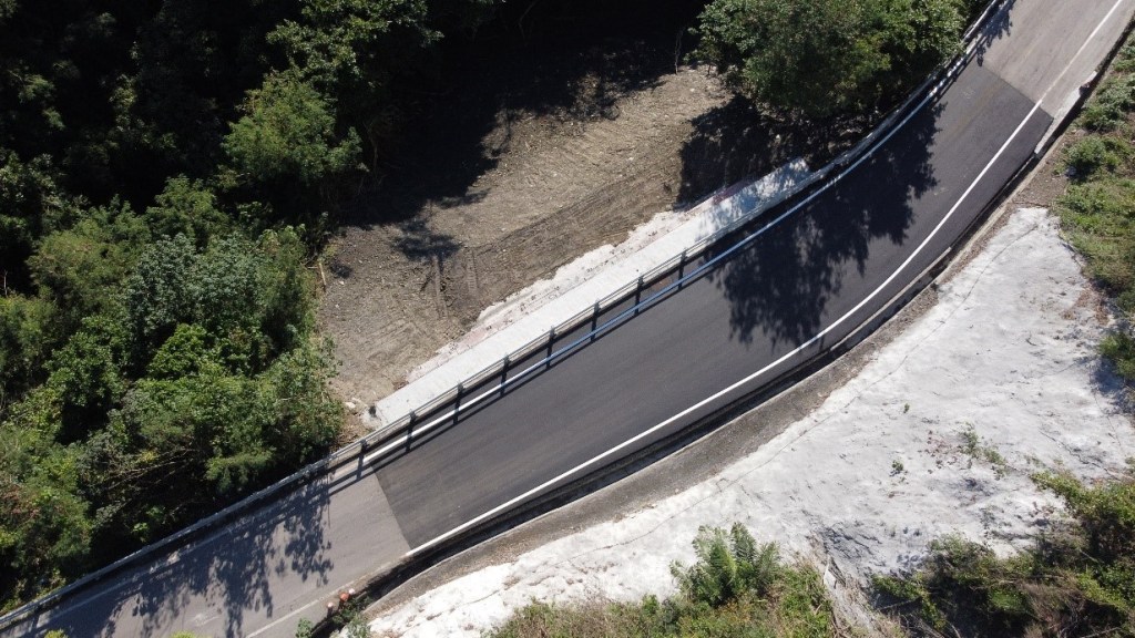 第一期計畫總經費3.21億元,於109年8月18日開工,預計於今(111)年11月完工,目前已施作完成2.9K、3.3K、3.4K、4.9K等路段的自由型格梁護坡、防落石柵欄及排水溝等設施,新建完成的道路設施在經歷圓規颱風的考驗下,均無受損,施工品質優良,確實提升道路安全性。今(111)年3月28日再獲交通部公路總局核定補助第二期計畫,總經費5.22億元,目前辦理委託設計監造勞務採購招標作業中,預計在明(112)年中旬完成工程發包。