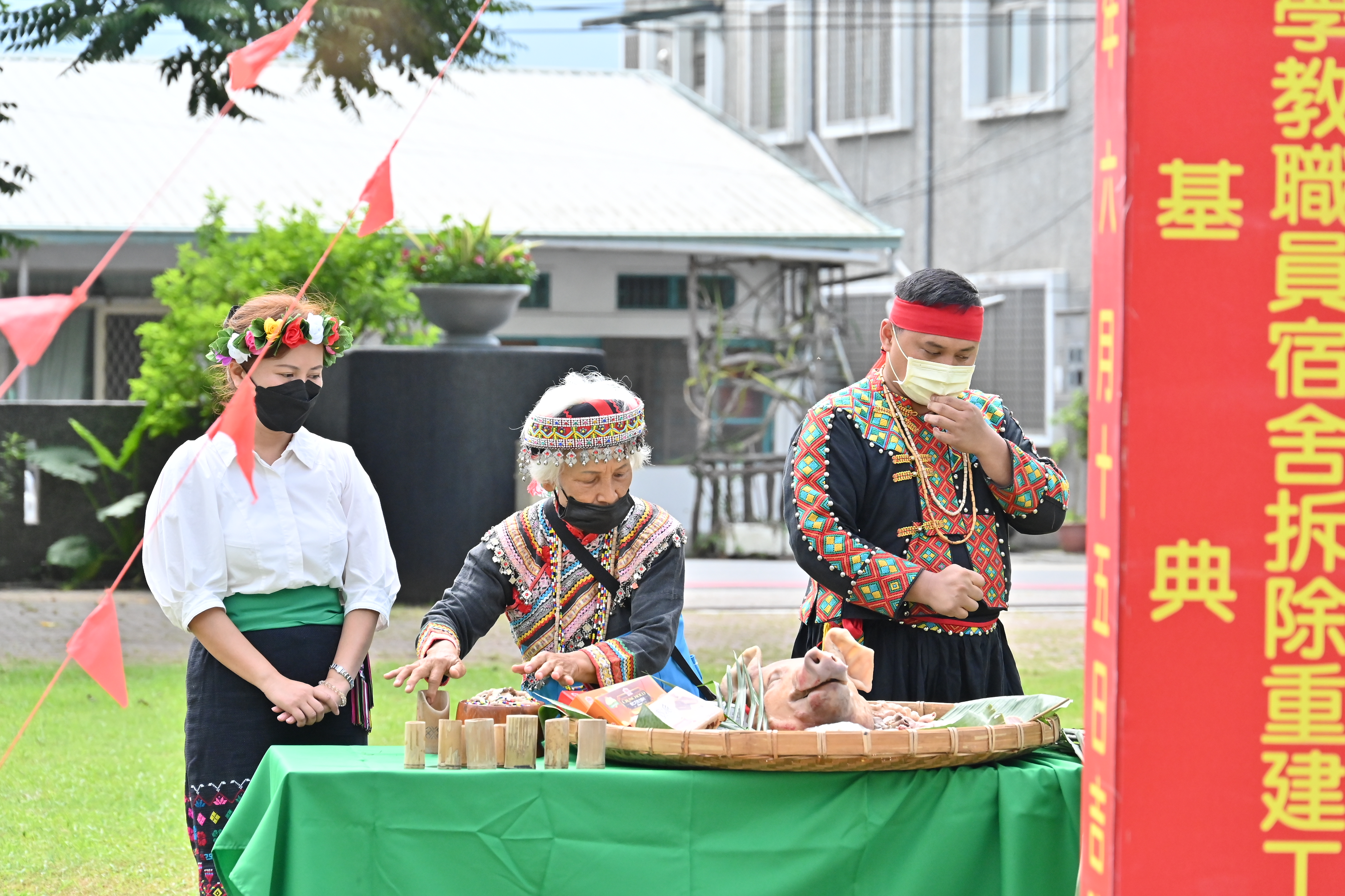 為留下優秀師資及解決偏鄉服務教師的居住問題,縣府積極爭取經費投入宿舍拆除重建工程。 教育處說明,海端國小教職員宿舍將打造一層樓斜屋頂式建築,面積約300平方公尺,共計10間教職員房間,其中1間提供無障礙環境設計。除有交誼廳等公共空間,每間房間皆有6坪多的空間供教師個人使用,後方有小庭院可引入自然光源外,更有綠籬增添生活綠意並強化教師隱私,也讓宿舍融入海端鄉的綠環境中,展現鄉鎮親民風格,緊密連結學校與鄰近社區。 此案自109年開始進行規劃設計,經過層層審查,在縣府團隊與設計單位努力下,去年底取得建照;而在工程招標過程中,因近2年營建工料、工資上漲等因素,最終在今年4月第4次招標順利決標,工期為150個日曆天,將於11月底前完成主體建築,預計今年年底完工啟用,讓教師能順利入住、安心教學。 縣府希望透過興建教師宿舍,提升優秀教師的留任意願,並降低偏鄉教師流動率,進而無後顧之憂地用心栽培在地學子,提升臺東原鄉教育。 現場有多位貴賓及校長一同獻上祝福,並由海端鄉巫師胡金娘用傳統布農族祝禱方式為教職員宿舍拆除重建工程祈福,盼工程一切順利,能為海端國小留住優質教師,為孩子打造優良學習環境。
