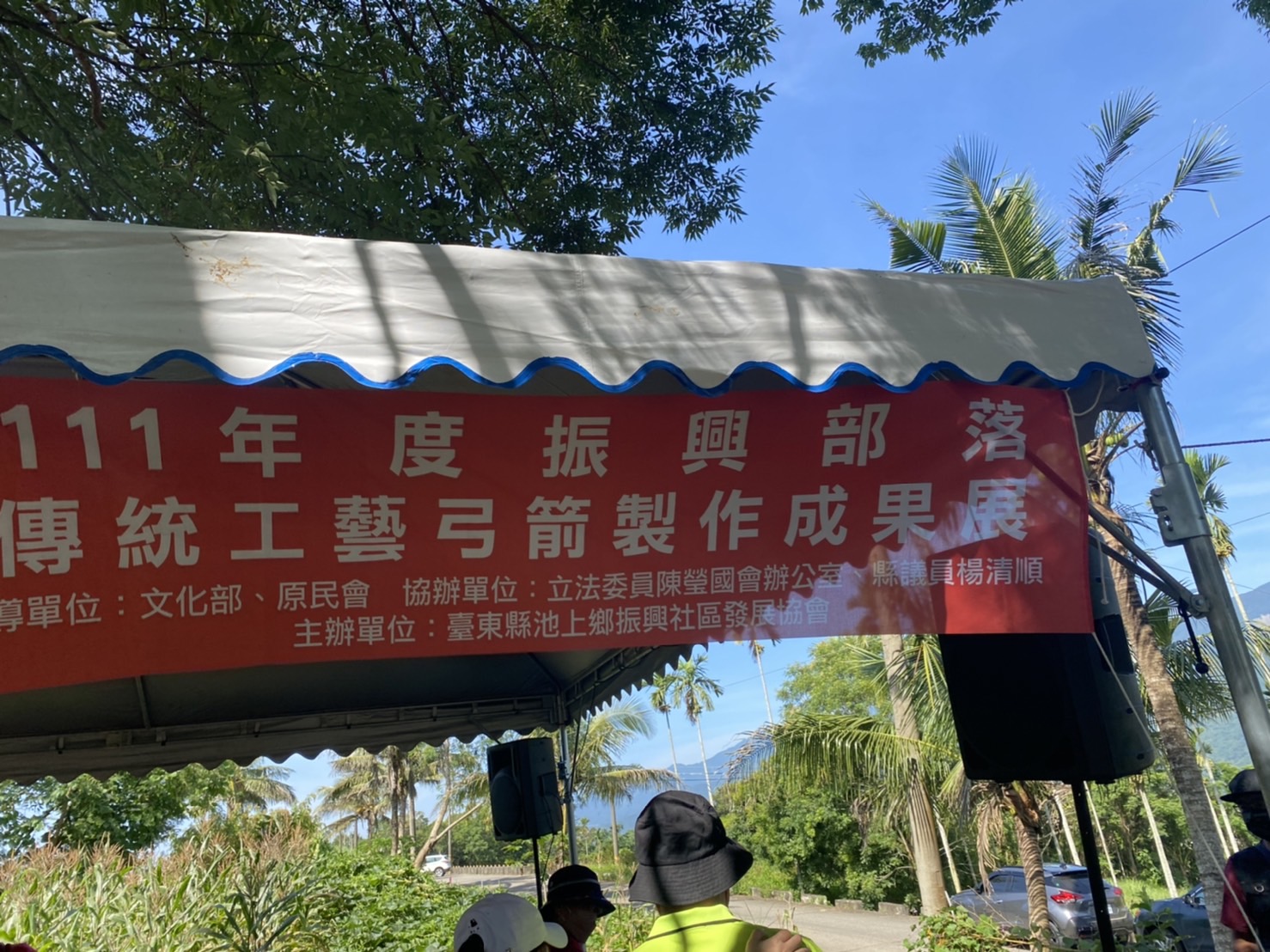 池上鄉振興部落今年獲得臺東縣議員楊清順、立委陳瑩、文化部等單位的經費協助下舉辦傳統工藝射箭製作研習,有30位振興村的男、女生報名參加。邀請來林志興老師開班授課,今天成果展除了現場陳列學員自製的弓與箭外,稍後大家還下場比拼一下射箭功力。