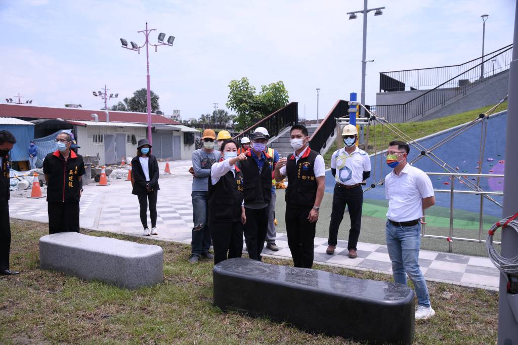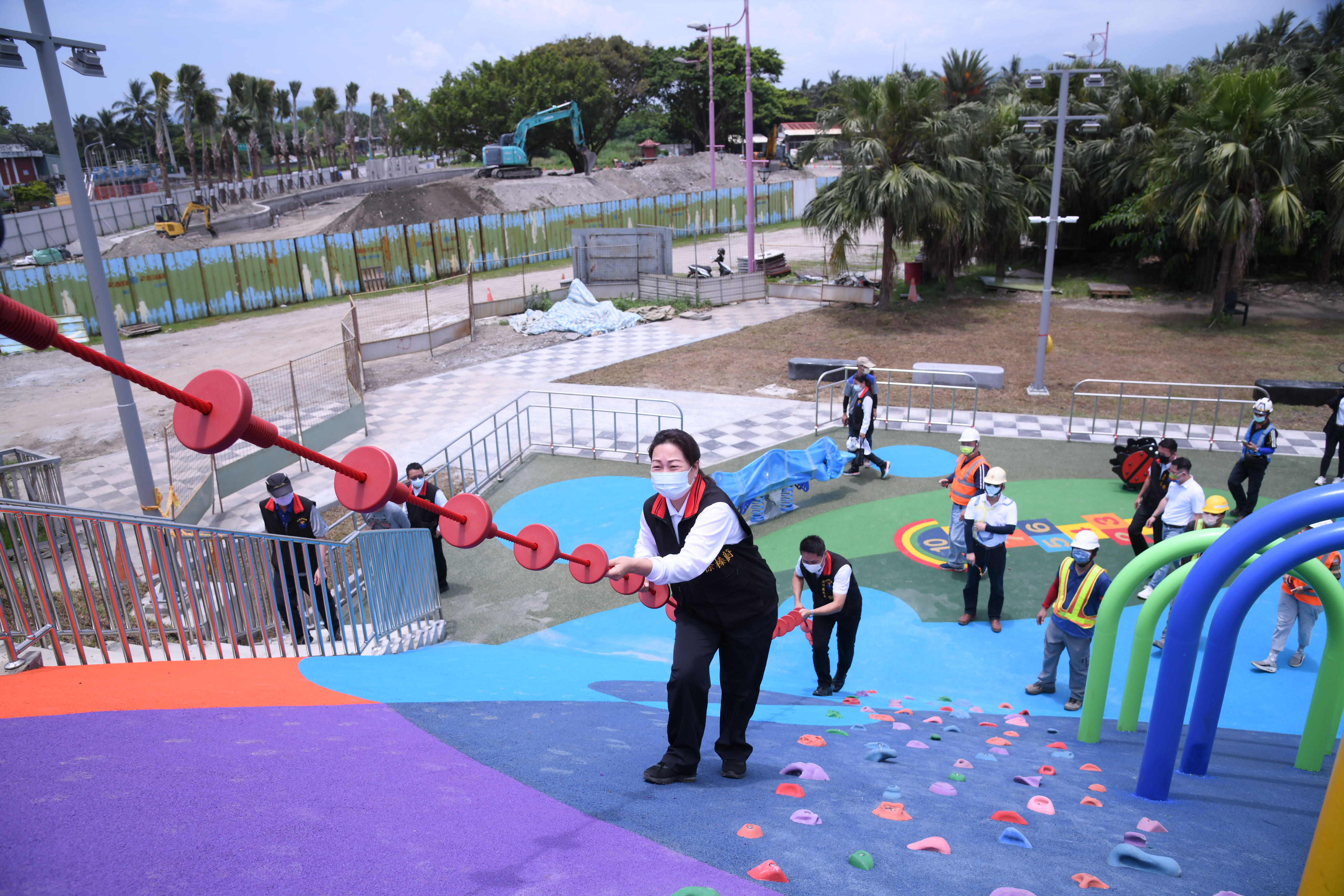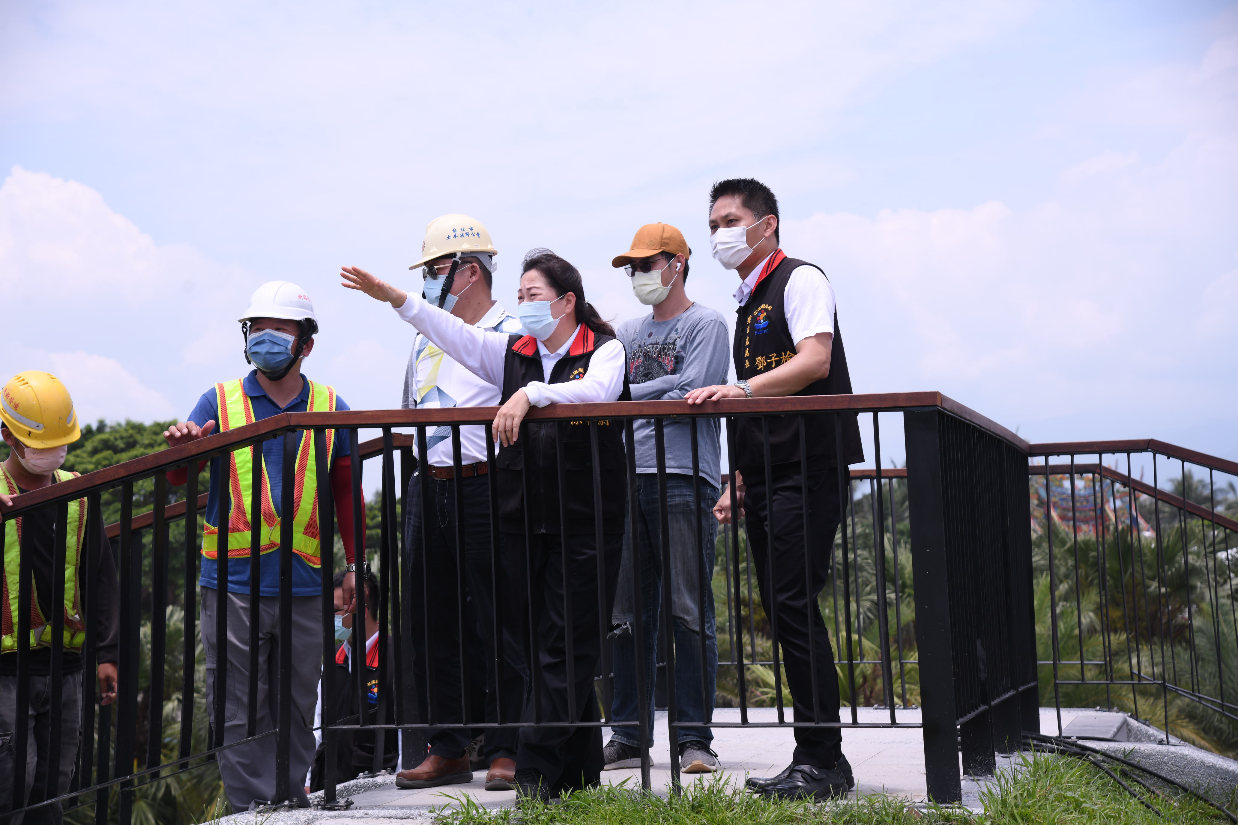 縣長徐榛蔚關心「陽光電城設施火災拆除及修坡與地景營造工程及共融公園設施改善工程」進度,今(21)日偕建設處長鄧子榆、觀光處長張志翔、青發中心執行長明良臻前往視察,徐縣長全面檢視設施安全情形,積極為鄉親打造共融新設施。