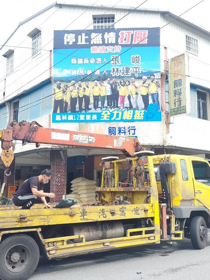 鳳林鎮已高掛12位里長聯合支持張峻議長和林建平主席的巨型看板