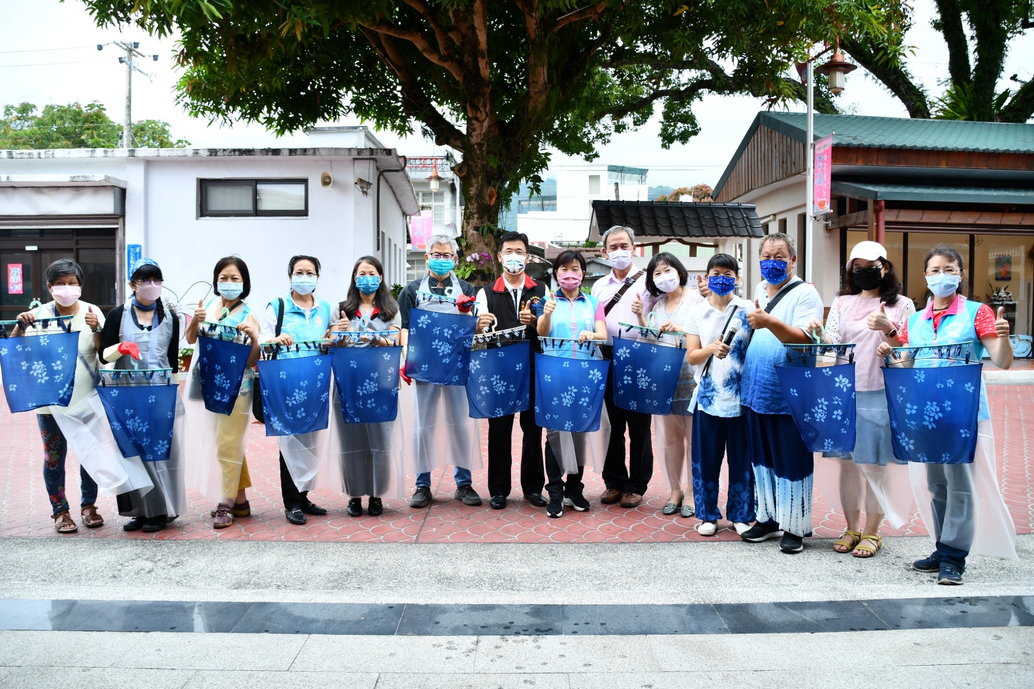開幕儀式後,湯文君老師也特別帶領鄉長游淑貞與來賓們進行「型糊染」DIY體驗教學,透過一次次反覆浸染,讓藍靛素附著於布料纖維之中,而帶有糯米糊描繪覆蓋之處,則將留白展現生動圖像。湯文君表示,藍染為客家族群具有代表性的傳統工藝,而吉安鄉更有不少客家鄉親居住於此,所以這次的體驗特別在手巾上以白色油桐花襯托藍染沉穩質感,讓大家帶回紀念。