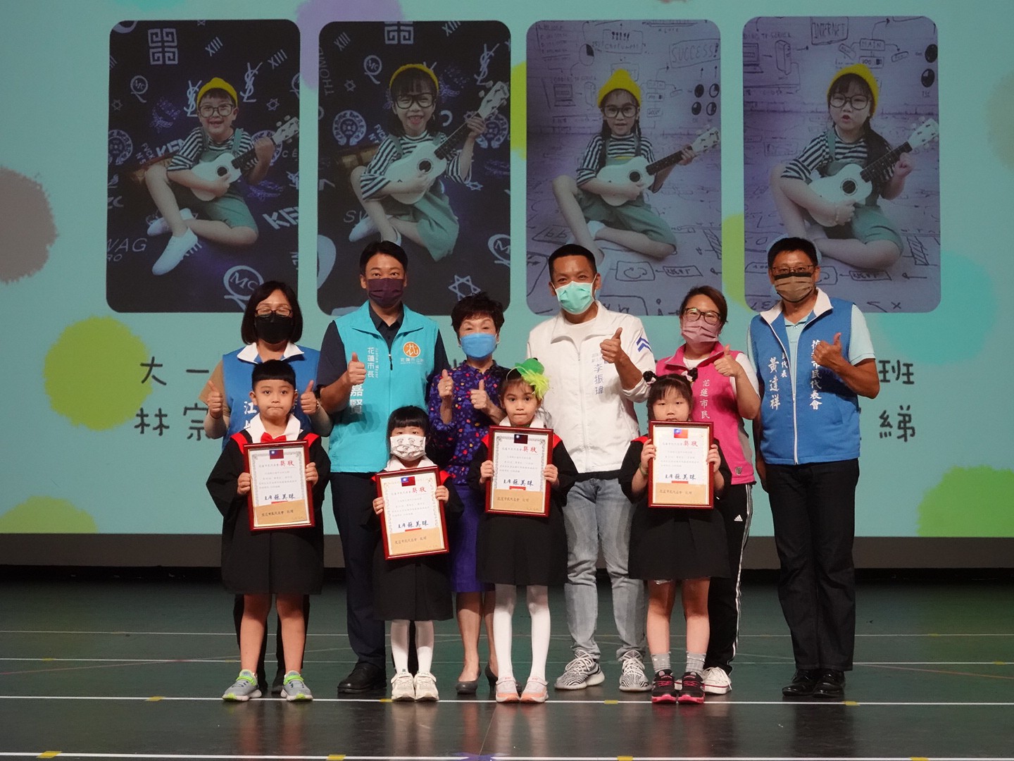 魏嘉賢市長致詞時說,感謝兩任園長曾園長、李園長,及老師們對孩子們的無悔的付出與指導,也感謝花蓮市民代表會對市公所幼兒教育的支持,同時也感謝家長對師長的信任,將心愛的寶貝交給幼兒園照顧。孩子們即將啟程步入下一個人生歷程,不同的挑戰也會接踵而來,期許將來遇到困難時,孩子們都能有智慧和勇氣面對一切,「長大」是孩子們必須完成的任務,祝願所有孩子們,一切都順利平安!代表會主席蘇美珠說,魏市長非常重視孩童教育,在代表會提出許多創新的想法,代表會都全力的支持。孩子們今天拿到畢業證書代表著在未來會有更多的學習與挑戰,她勉勵孩子們未來的路都要勇敢向前行。副主席李振瑋、代表蔣邦法、陳惠卿、黃達祥、韓林梅、胡仁順、謝豪杰、議員李秋旺都到場為孩子獻上祝福。縣長徐榛蔚與議長張峻雖未到場,皆透過影片祝福孩子。