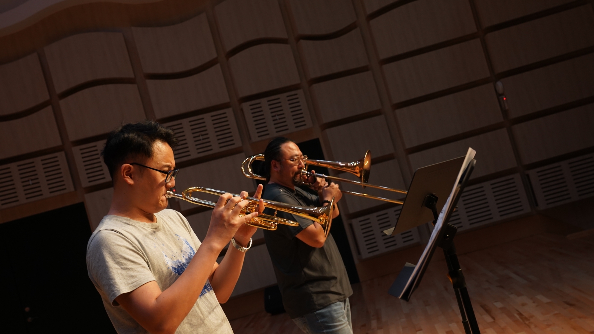 今天成果展一共演奏12首經典與流行曲目,由進階班的A團及初階班的B團分別帶來《頌歌》、《名曲集錦》、《你能感受到今晚的愛嗎?》、《精益求精》、《消失點》、《詩意間奏曲》、《長號國王》、《希望》、《電影捍衛戰士組曲》等經典曲目,A、B兩團也演出三曲大合奏《重訪歡樂》、《泰迪長號》、《在雨中唱歌》。低音、長號、單/雙簧管、薩克斯風、小號、長號、低音管、擊樂等樂器,時而激昂、時而悠揚的演出,讓在場觀眾陶醉忘我。