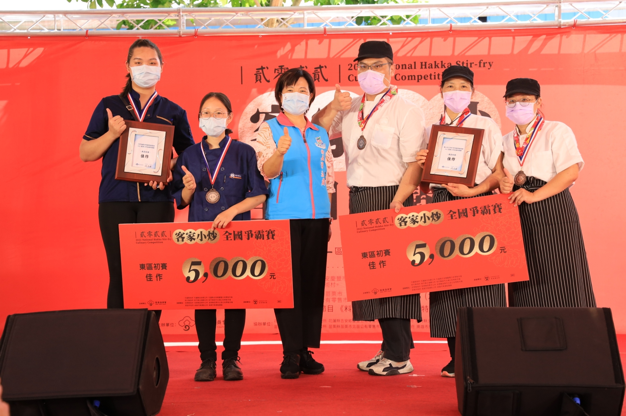 中央客家委員會辦理全國客家小炒爭霸賽,東區初賽年年首選吉安鄉好客藝術村熱力開炒!從市場採買、備料炒創意…經歷一番專業廚藝激戰後,結果冠軍由「銘師傅餐廳」勝出,亞、季軍分別為「連記海產」、「花邊美食館」榮獲殊榮。吉安鄉長游淑貞感謝客委會為推廣客家好滋味,於全國各地辦理創意競賽,不僅推廣客家傳統美食,更活絡在地市場經濟發展,鄉公所非常樂意協力合作,藉此攜手推廣客家飲食文化、共同帶動客庄經濟發展新契機。 2022客家小炒全國爭霸賽東區競賽,由十餘位來自宜花東知名餐廳大廚齊聚一堂,前進慶豐市場採買各種新鮮食材,透過妙手與創意,烹調出各種顛覆大家想像力的客家好食味。迴香巧滋味、特殊台客味更是擄獲評審的濃情味蕾,深獲好評!