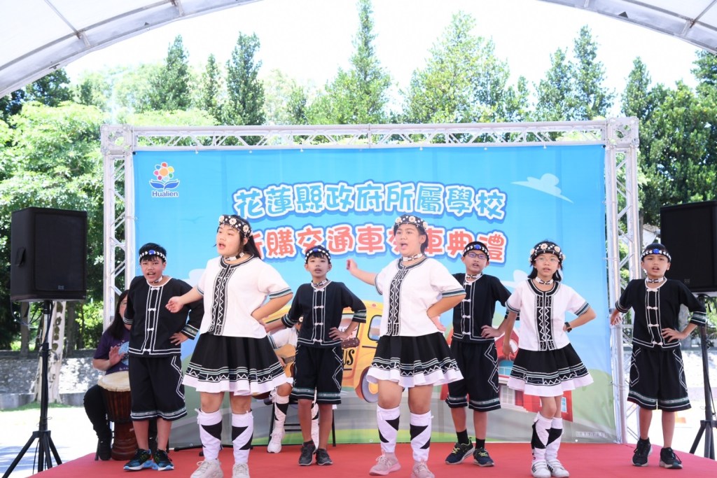 活動一開場由豐濱鄉新社國小帶來活潑可愛的原住民族舞蹈表演。典禮中,亦邀請鳳林國中的學生分享自己搭乘交通車感想,讓大家實際瞭解花蓮縣政府提供交通車的用心與美意,確保學生就學安全,讓學生在學習的過程中可以快樂平安成長。