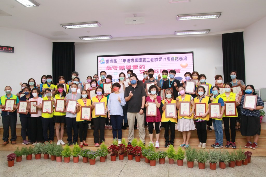 「有您們真好」臺東縣政府為感謝導護志工(老師)及愛心服務站,為保障學子交通安全所作的努力與辛勞,激勵志工服務熱忱並樹立優秀服務典範,特別於今(12)日辦理111年優秀導護志工、老師、愛心服務站表揚活動,由縣長饒慶鈴到場頒獎並致贈感謝狀,今年度表揚導護志工39人、導護老師15位、11家愛心服務站負責人等共計65位。饒慶鈴表示,營造安心安全的學習環境是縣府重要的教育施政目標,感謝各校賦有愛心的導護志工、老師們守護學童安全,也呼籲更多民眾投入志工行列。