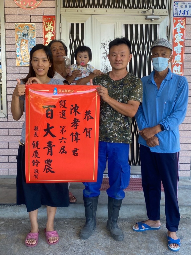 第6屆百大青農選拔出爐,臺東縣青農温源田、羅永昌、陳孝偉等3人,從競爭激列選拔中脫穎而出,縣長饒慶鈴大讚青農優秀表現,並即刻指示縣府農業處派員前往家中張貼紅榜祝賀,期盼獲獎青農能為臺東農業注入新的力量,以創新思維活絡產業,創造嶄新的未來。