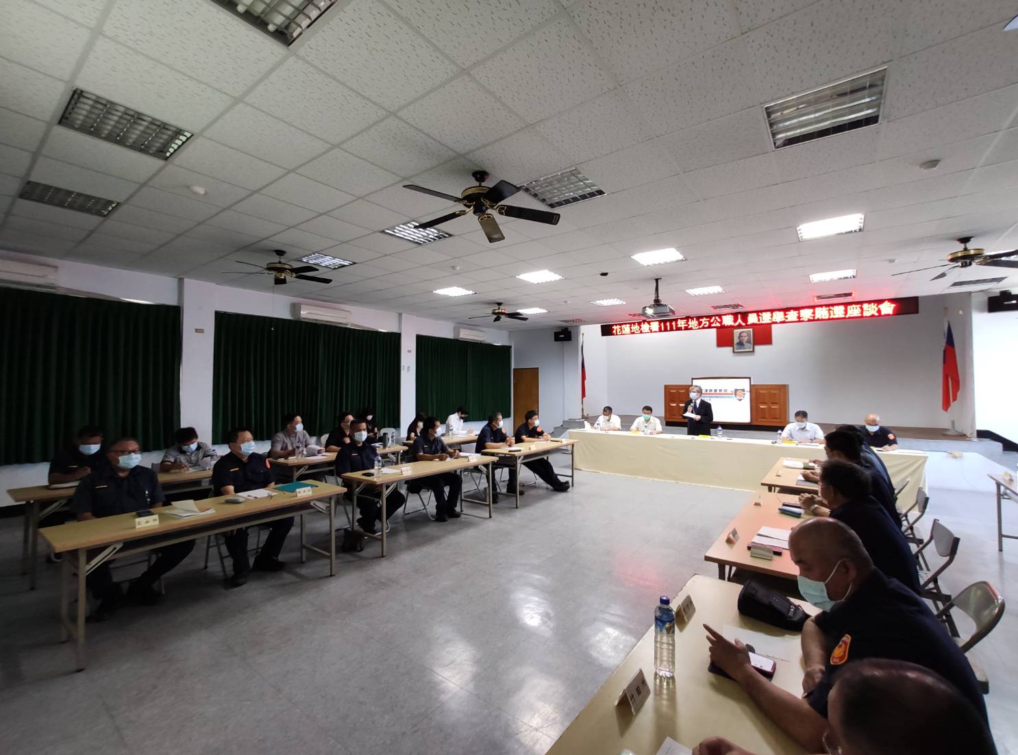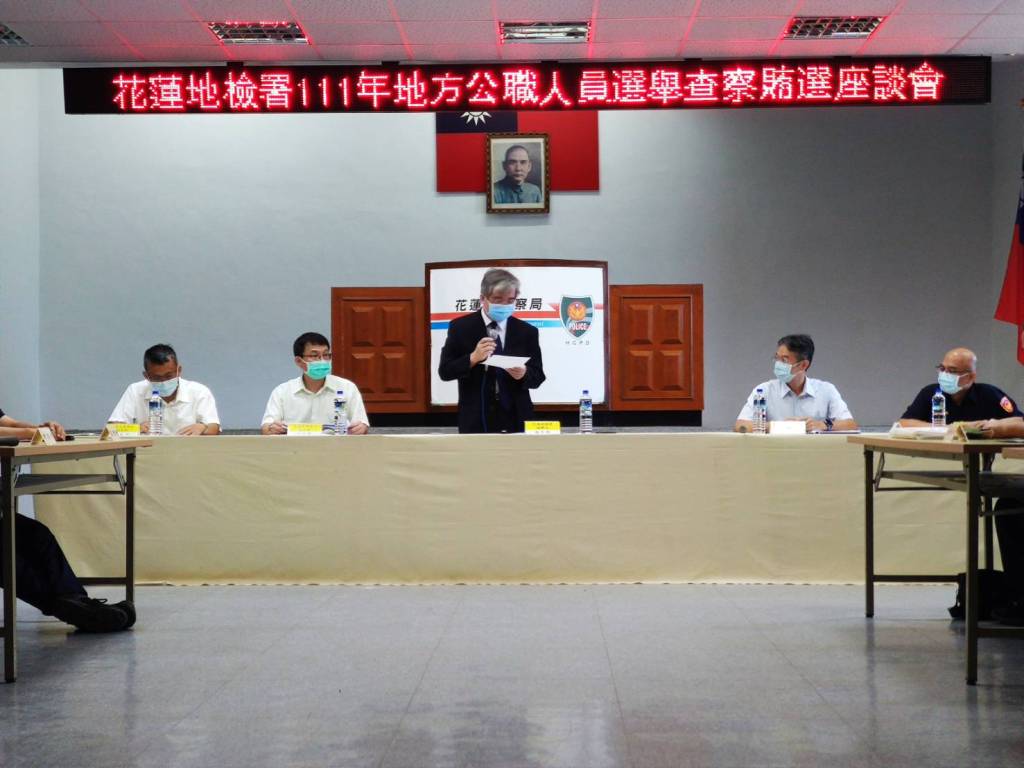 111年地方公職人員五合一選舉定於11月26日舉行投票,將縣長、縣議員、鄉(鎮、市)長、鄉(鎮、市)民代表及村(里)長合併舉行;為遏止賄選歪風、暴力及假訊息介入,花蓮地方檢察署檢察長蔡宗熙率林俊廷主任檢察官、花蓮縣政府政風處科長林娟如、調查局東機站副主任林枝明、花蓮縣調查站副主任洪金龍率組長李聖祈、調查官宋國強、陳詠詮、花蓮縣警察局刑警大隊大隊長郭有志率組長廖祥凱、玉里分局分局長温基興率偵查隊長黃宸緯、偵查隊小隊長、各分駐派出所長等人假花蓮縣警察局玉里分局禮堂;針對查察賄選及淨化選風等相關議題意見交換,期望選舉期間,能有效防止賄選、暴力及假訊息介入,淨化選舉治安。
