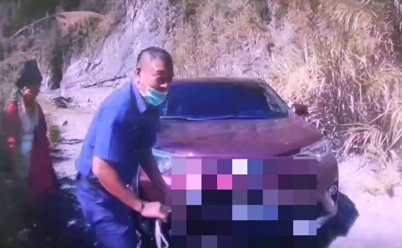 臺東縣警察局關山分局霧鹿派出所於昨(13)日8時41分左右,接獲勤指中心轉報「有民眾車輛卡在沙地,請前往協助」。所長胡松俊仁駕駛自用四輪傳動吉普車率警員邱承福帶著繩索馳援,抵達現場後,熟捻的套繩打結,一會兒工夫就將車拉出脫困。鍾姓民眾一再向員警感謝,所長也貼心提醒,千萬不要再為欣賞美景而涉險,以免發生意外事故,屆時可就追悔莫及了。
