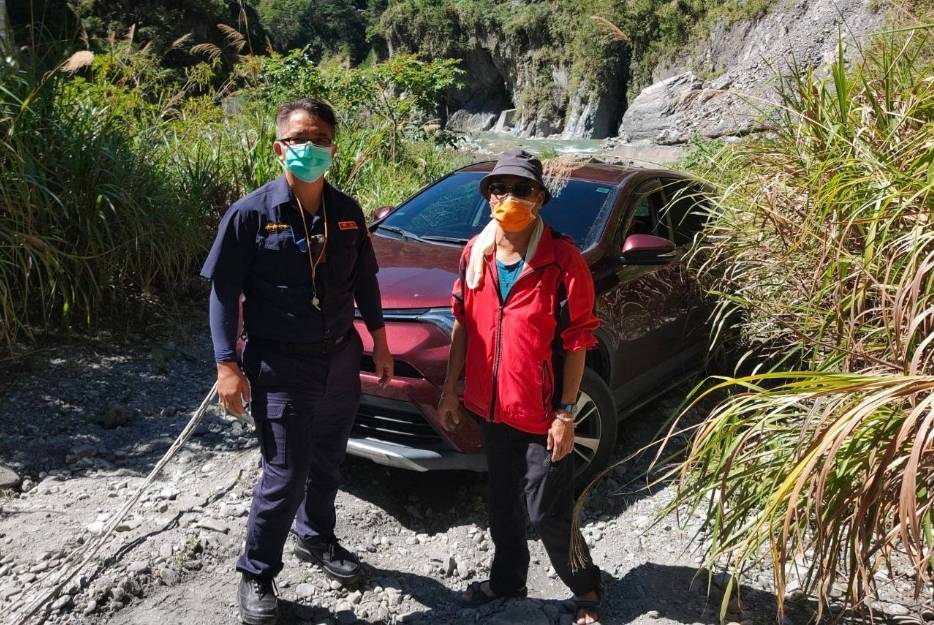 臺20線(南橫公路)因鬼斧神工的宏偉峽谷及古木參天的自然景觀而聞名,吸引國內外的遊(旅)客前來朝聖。來自屏東的鍾男(53歲),駕車欲自臺20線返回屏東,沿途欣賞峽谷美景,行經177公里處時,看到有一叉路往溪底峽谷方向,遂臨時起意驅車駛去。拍完溪底美景欲駕車返程,結果因溪底為沙石路段,導致車輪抓地力不足,就一直在原地空轉。眼看時間分秒過去,又怕趕不上臺20線14時的管制通過時間,只好撥打110向警察求援。霧鹿派出所所長胡松俊仁接獲勤指中心轉報,並得知上述狀況後,隨即駕駛自用四輪驅動吉普車,帶著繩索率同員警前往。抵達現場後,曾當過士官的邱員,熟捻的套繩打結將兩車繫牢,再一聲令下,兩車同時催油,協助車輛順利脫困。民眾一再感謝警察的援助,並說下次一定不會再開到溪底了,謝謝您們。