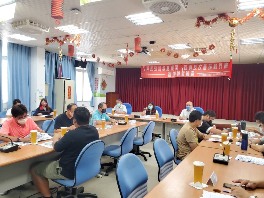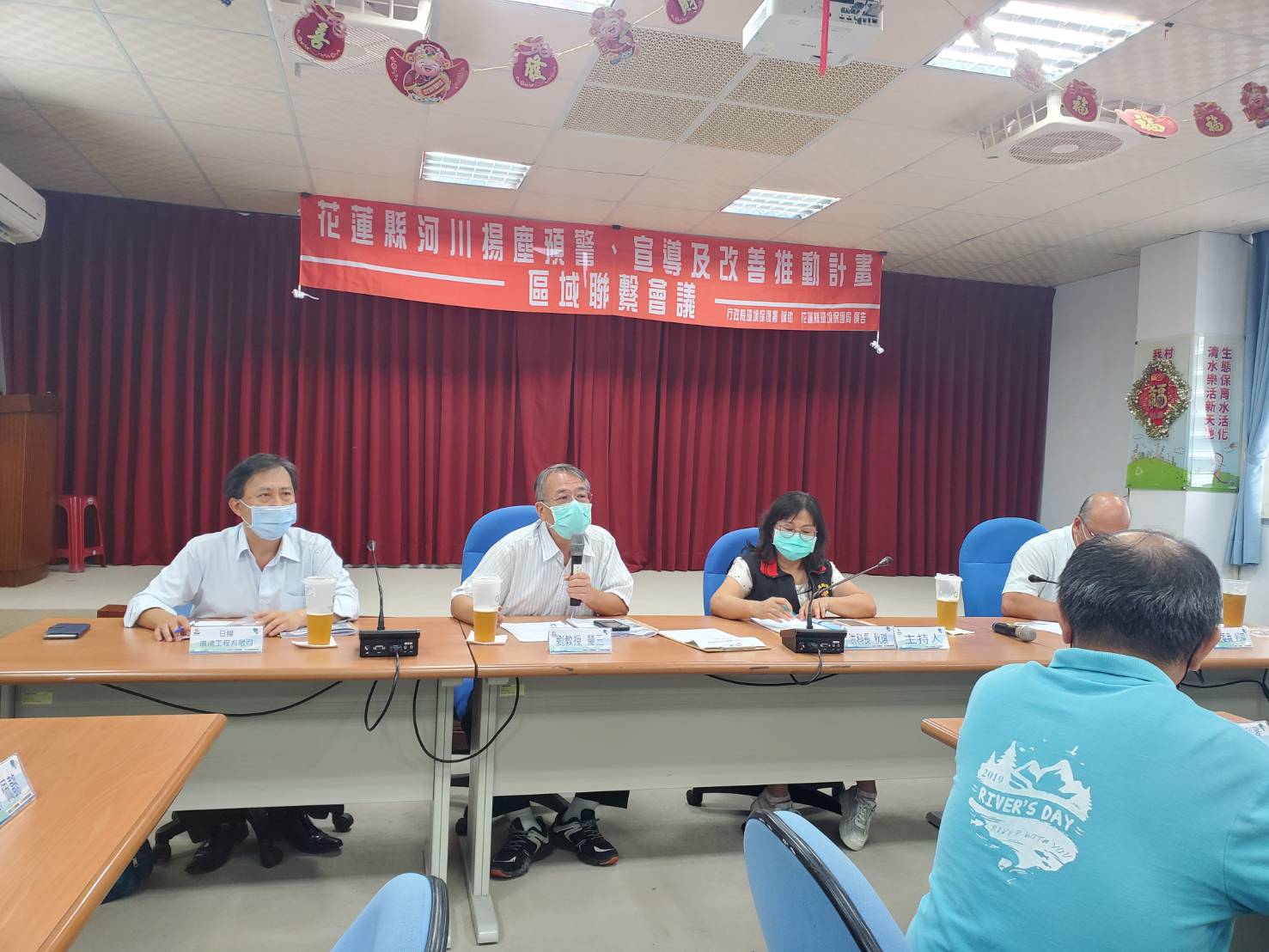 會中邀集包括經濟部水利署第九河川局、花蓮縣政府建設處水利科、民政處公共造產科等單位與會,進行近年河川揚塵防制作為與執行成效實施專題報告;另聘請東華大學教授劉瑩三及大漢技術學院教授胡紹華二位學者指導,會中提供許多寶貴意見,供各單位參考運用。另外,亦邀請行政院農業委員會林務局花蓮林管處與會,針對2050淨零排放議題,研討植栽綠化(覆)對全縣負碳之貢獻。