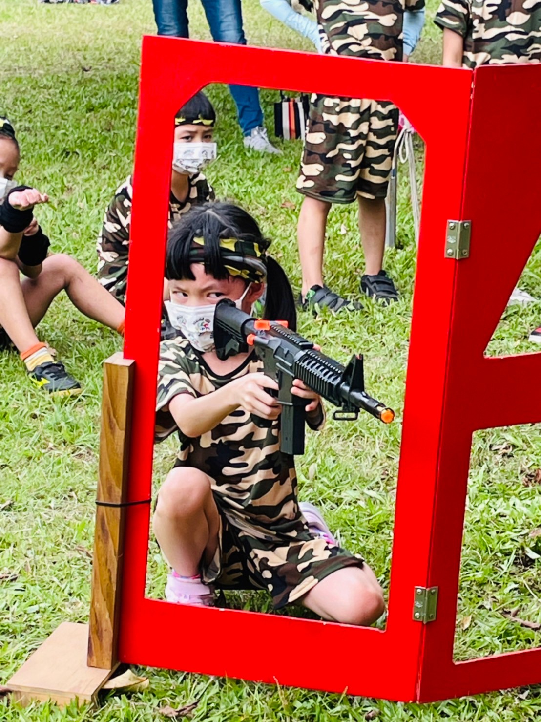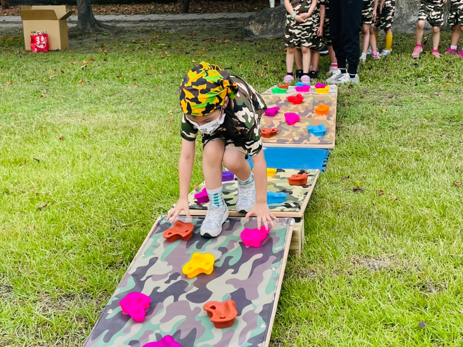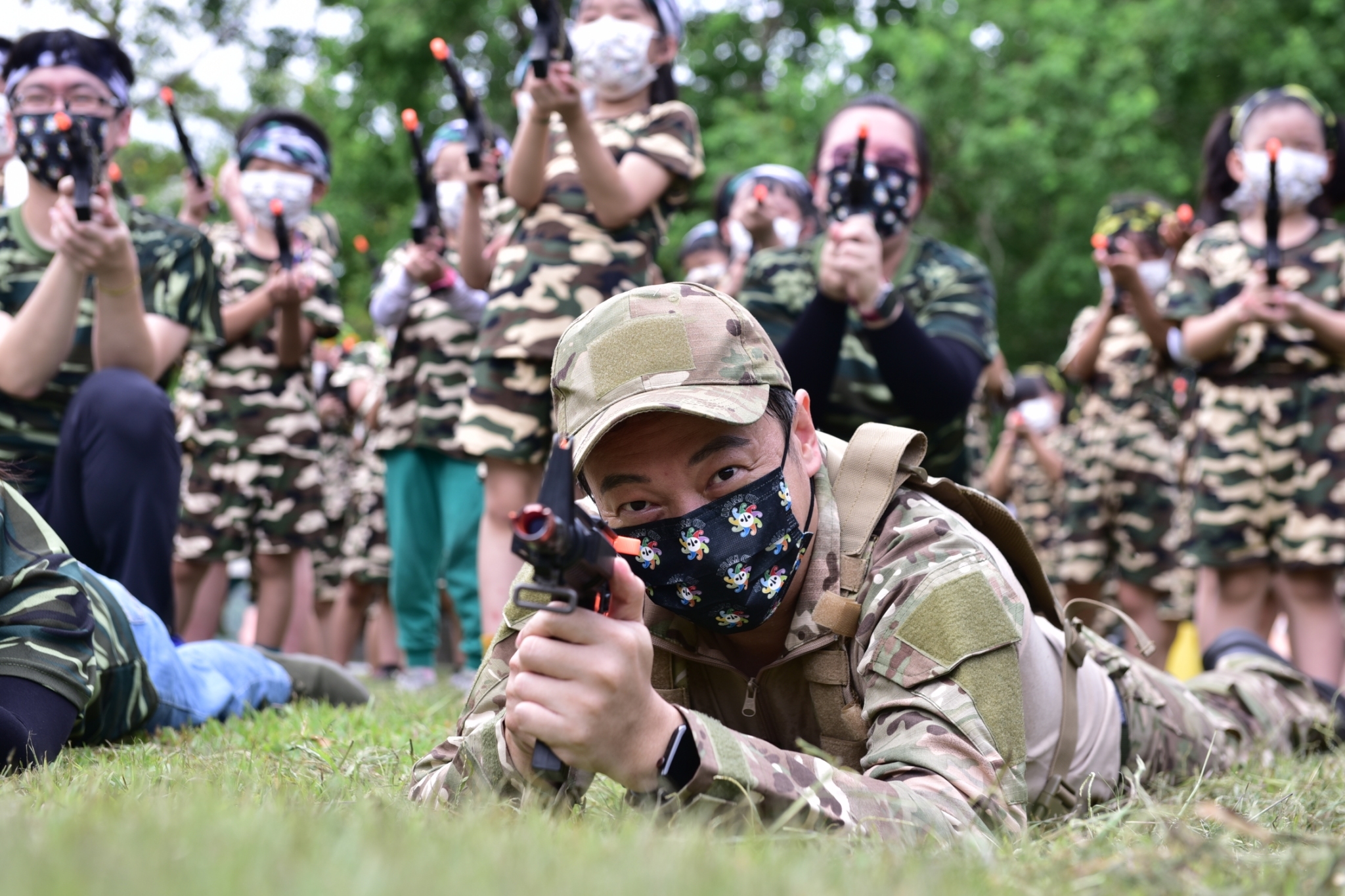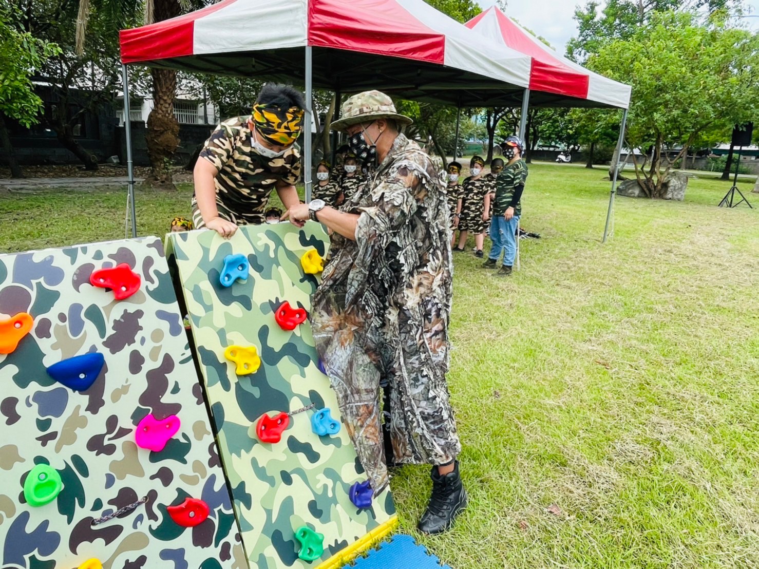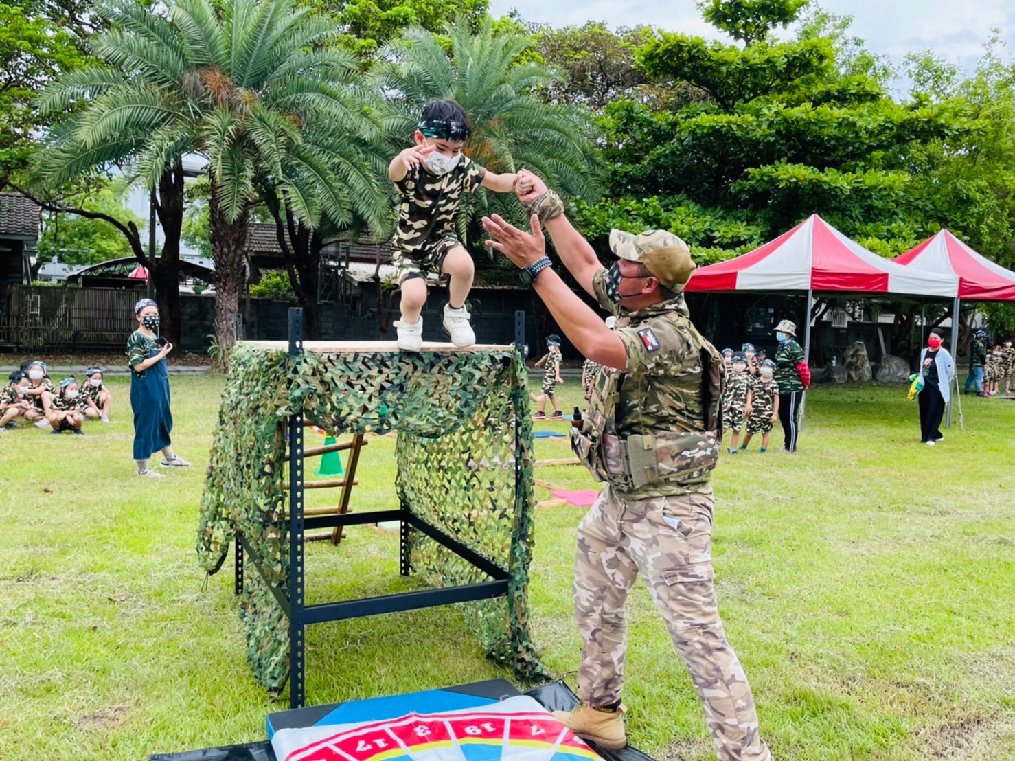在正式挑戰關卡之前,魏市長與李妃伶園長先和孩童們一起暖身,從伏地挺身的體能訓練開始一直到刺槍術教學,尚未開始挑戰單兵作戰的小朋友就已經玩到滿頭大汗,欲罷不能;「捌啵童趣藝術工作室」表示,這次活動的關卡設計都是以小朋友的安全為首要前提,讓孩子能在具有完善防護的場域下進行挑戰,讓孩子能無後顧之憂地勇敢完成任務。