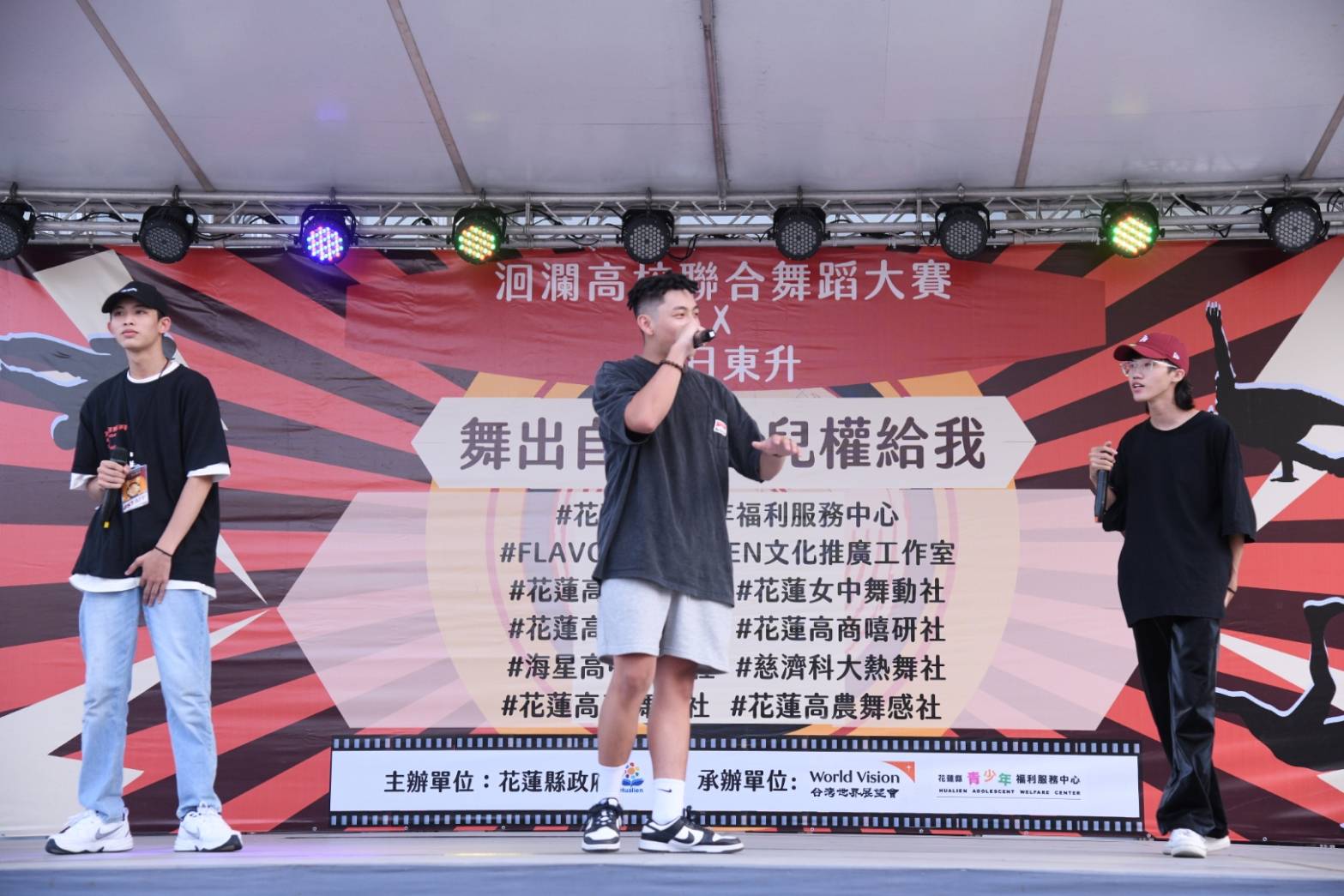 花蓮縣政府委託台灣世界展望會辦理111年度花蓮縣青少年福利服務中心,每年暑假期間辦理青少年喜愛的休閒活動,並致力推展花蓮縣兒少福利服務,讓青少年度過充實有意義的假期。今(16)日於花蓮遠東百貨和平廣場辦理第二屆「洄瀾高校聯合舞蹈大賽x旭日東升」活動,花蓮縣長徐榛蔚、縣議員李秋旺、吳建志皆出席致意。活動以「舞出自我X兒權給我」為主題來宣導兒少權益,邀請花蓮各高校喜愛跳舞的社團青少年一同以舞會友,舞出青春熱血色彩。