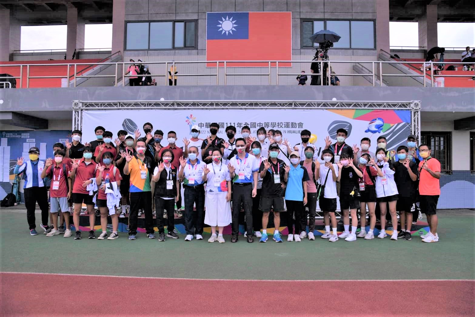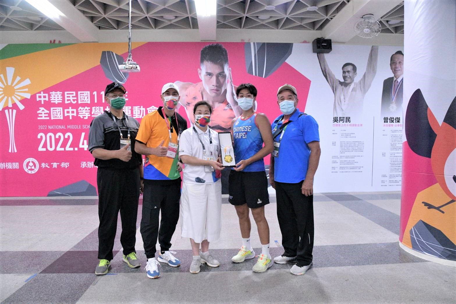 全中運復賽採三階段進行,第二階段賽程於7月15日至20日登場,分別進行田徑、游泳、角力、自由車(公路、登山車)及木球等五項賽事。在昨(16)日賽事過程中,由花蓮體中劉芷妊奪得田徑鐵餅項目高中女子組金牌,花蓮縣再下一金,徐縣長今日親自頒發獎牌,也邀請選手教練及楊俊瀚等人共同合影留念,徐縣長隨後也在楊俊瀚的陪同下,訪視慰問場邊裁判及工作人員。