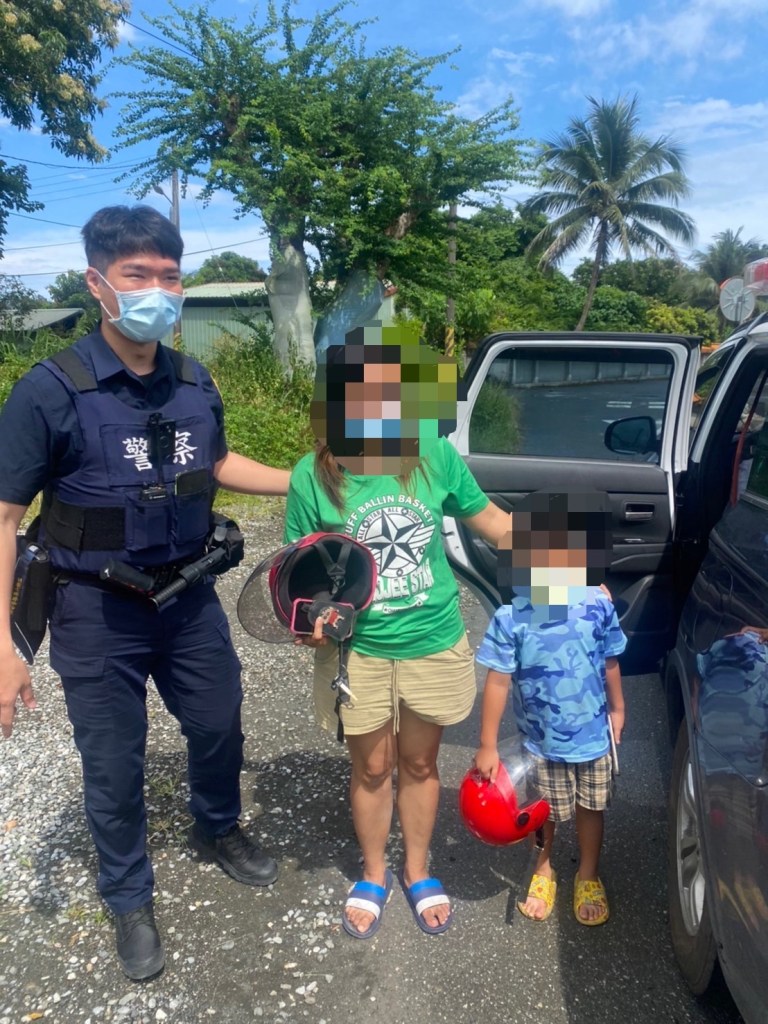 14日新城警分局加灣派出所警員游雷廸於14時許,巡邏行經臺9線177公里處南下車道,看見一名婦人駕駛普通重型機車載著一名5歲大的小朋友,突然駛入路邊不慎摔入草地,員警立即上前關心,協助民眾返家。