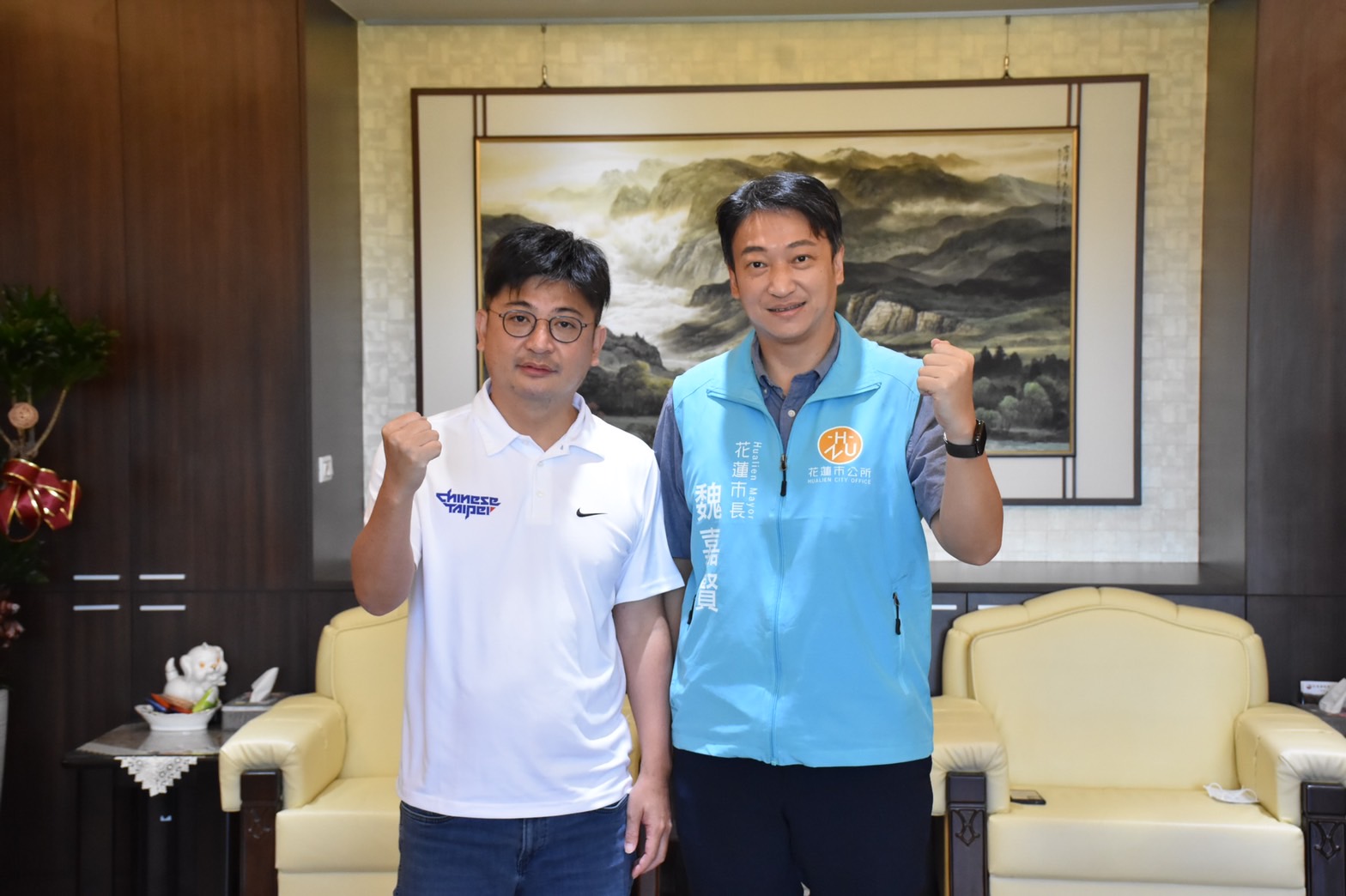 彰化縣議會議長兼全國地方議會正副議長聯誼會副會長謝典林,7/18日上午前來花蓮縣議會拜訪張峻議長和花蓮的多位好朋友,花蓮縣議會張峻議長偕同國民黨黨團總召謝國榮議員、魏嘉彥議員、黃馨議員與花蓮市長魏嘉賢、秀林鄉代表會主席賴俊傑等人一同於議長室接待,謝典林議長每次來到花蓮就一定要找這些好朋友敘敘舊。在這次敘舊中也特別針對年底大選做意見交流,大家也都各自表達對國民黨的期許與看法,希望透過黨內團結,可以獲得年底的大勝。