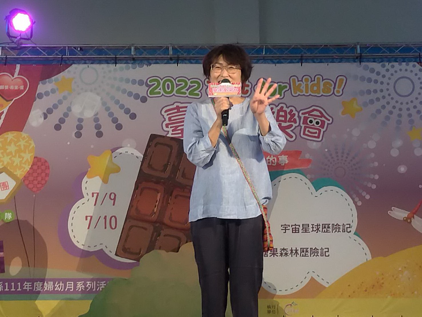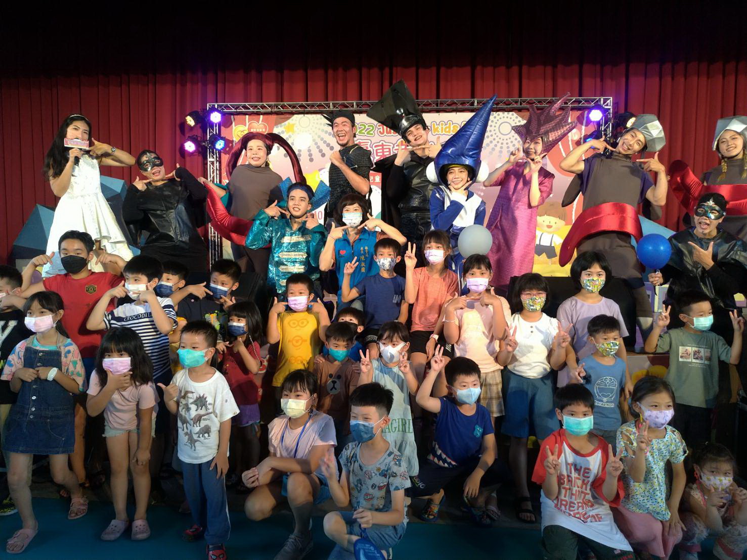 「兒童的事,大家的事!」臺東縣政府為讓兒童有一個快樂暑假,今年特別規劃辦理4場次「2022 Just for Kids 臺東童樂會」,邀請國內知名的蘋果劇團,量身打造屬於臺東孩子們的「童」樂會藝術下鄉巡演活動,連續兩個周末日、4齣戲劇在臺東縣內進行盛大巡演,並於昨(17)日劃下完美句點,吸引不少家長帶著孩子欣賞,獲得熱烈迴響。縣長饒慶鈴也親自到場與民眾同樂,並表示,壓軸2場富含教育意義的演出,不僅讓臺東的大朋友小朋友在暑假期間多了一個難忘的戲劇饗宴,更透過蘋果劇團帶來經典的歡樂歌舞劇《糖果森林歷險記》與《宇宙星球歷險記》,引導孩童發揮想像力,帶領孩童打開從真實世界建立正確自我價值。