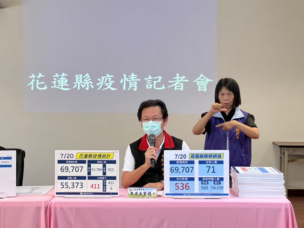 花蓮縣今(20)日政府召開疫情說明記者會,由衛生局長朱家祥及教育處專員李佳玲主持。朱局長於會中說明,根據中央疫情指揮中心公告自7月19日起符合於室內從事運動、室內外拍攝個人/團體照時、自行開車、騎機車/腳踏車、戶外從事工作者於空曠處工作、於山林、海濱活動、於溫/冷泉、烤箱、水療設施、三溫暖、蒸氣室、水域活動等、外出飲食等得免戴口罩,但應隨身攜帶或準備口罩。