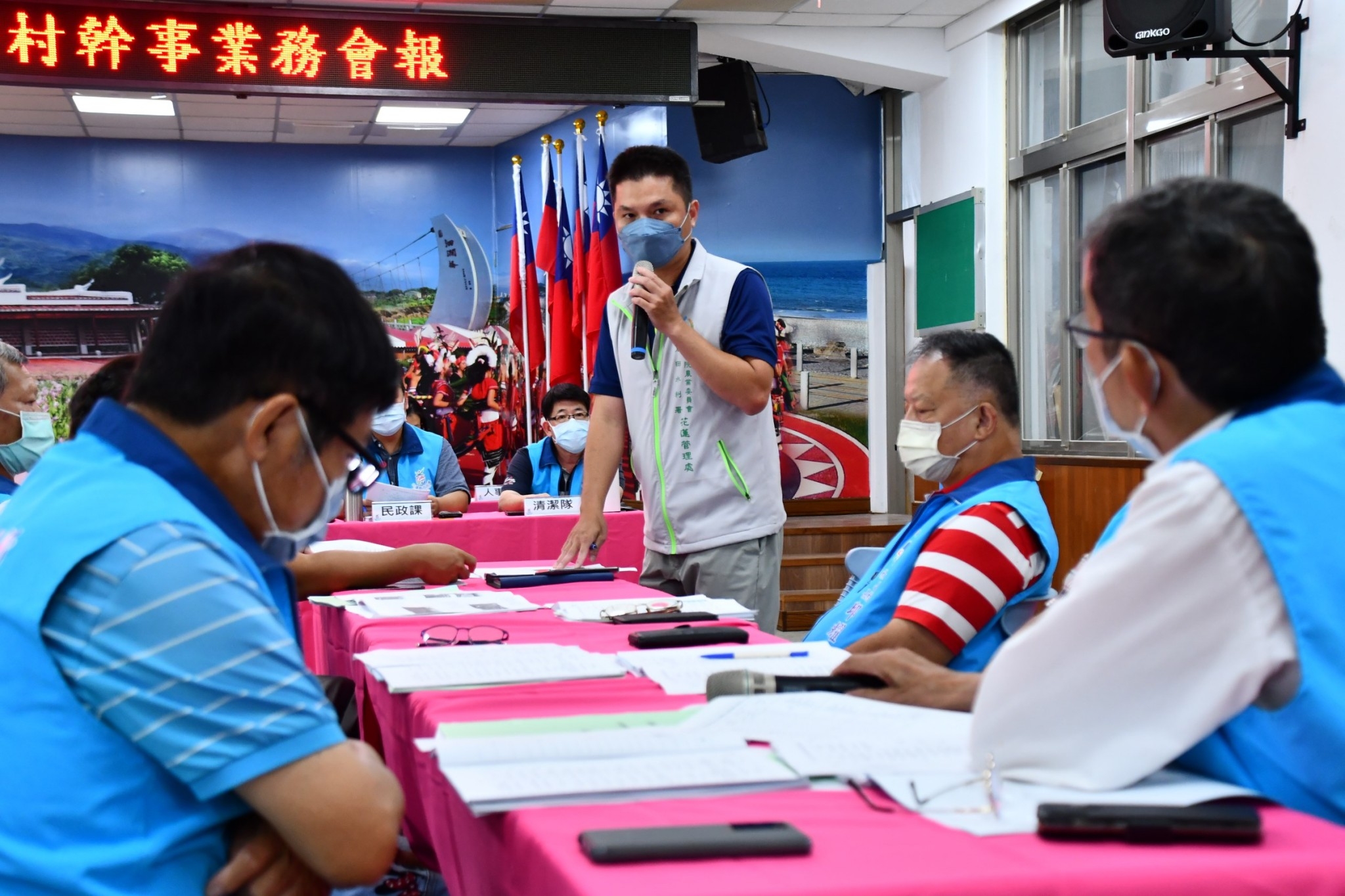 吉安鄉公所召開「111年度第3次村長暨村幹事業務會報」,由鄉長游淑貞親自主持,率主任秘書高文彬及各課室主管,會同鄉內所有村長、村幹事,共同針對鄉政各項業務推展與地方建設、社會福利、環境美化、藝文發展等進行互動交流。游淑貞表示,村長是公所基層服務團隊中最前線的一員,盼藉由定期性面對面溝通與執行瓶頸或攸關鄉親權益、福利、建設等相關議題研討,以利推動更貼近民意需求的適性規劃。 由於歷次會議多有村長提出鄉內農田水利設施相關議題,這次會議特別邀請行政院農業委員會農田水利署花蓮管理處吉安工作站陳厚文站長列席,針對村長提出的57件水利溝渠相關案件,親自向村長說明,共商解決方法以提高處理效率解決鄉親問題。陳厚文指出,農田水利會經改制後,以往水利小組的功能與配合度也有所轉換,感謝村長協力承擔起小組長的工作角色,會後將協請同仁安排現勘,依序視情況逐一進行改善。