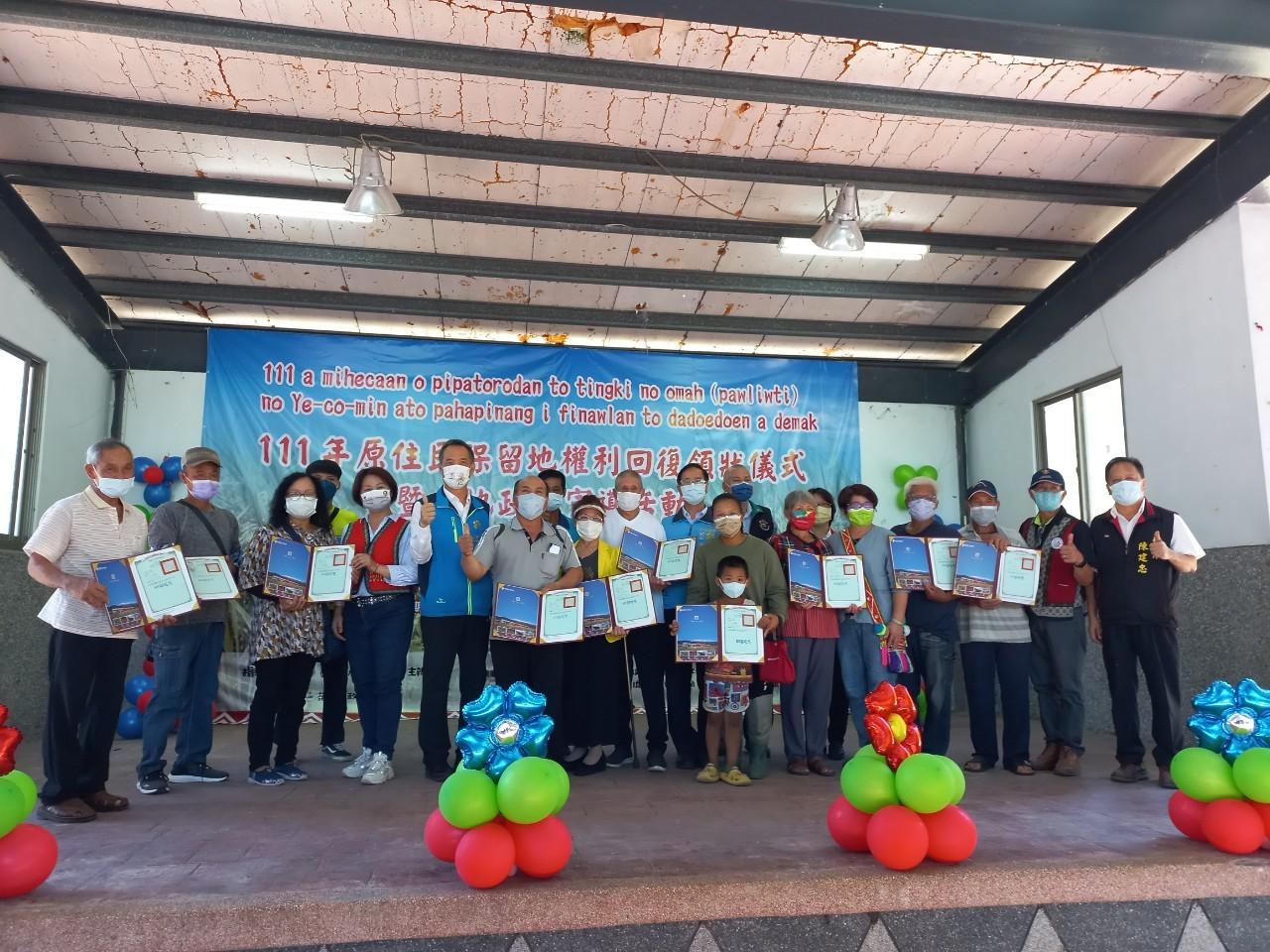 住在三民里達蓋部落80多歲的劉先生表示,過去父母親長久居住的土地原是鎮公所接管的公有地,在103年提出增劃編原保地的申請,期間經歷數次會勘、分割、審認、提案送代表會同意、縣府審核、原民會核定,最後再到地政事務所登記所有權,實是艱辛且漫長的過程。但多虧有公所及有關機關主動積極的協助處理,才有今天取得實質所有權的感動。 今日立委鄭天財、原民會阿美族群委員王福來、噶瑪蘭族群委員潘明治、立法委員傅崐萁服務處主任徐永成、立法委員陳瑩服務處副主任林沛琪、縣議會副議長潘月霞、議員黃玲蘭、議員陳建忠、南區服務中心副主任楊裕民、鎮代表葉微琪、鎮代表秀吉‧撒夫洛、瑞穗鄉代表林玉芬、縣府葉樹芬、土地權利審查委員以及各部落頭目等,亦一同到場與各文健站的長者們見證族人取得土地權狀,同時會場中也展示了平日長者們在文健站課程中學作的手工藝品,讓活動充滿溫馨與歡笑。