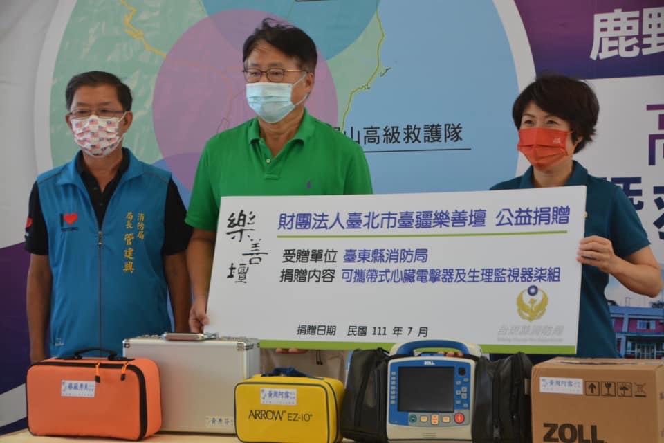 臺東縣消防局今日下午舉行鹿野、池上消防分隊高級救護隊成軍暨救護裝備捐贈儀式,由縣長饒慶鈴親自主持並頒發感謝狀給捐贈二千萬元裝備的黃榮海董事長;饒縣長表示,開始聽說有人要「全包」高級救護隊的器材裝備以為是遇到詐騙集團,沒想到黃董事長不但是信守承諾,在過程中還直催進度趕廠商要準時交貨。高級救護隊現場並進行情境演練,順利將一度失去心跳呼吸的患者成功救回而贏得現場來賓掌聲。