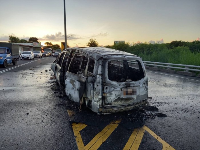 臺東市知本路一段自小客車撞擊路中護欄 起火燃燒