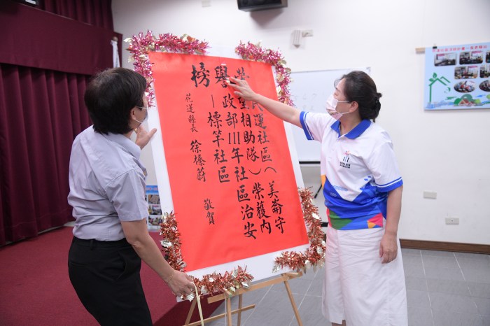 花蓮市民運社區榮獲全國111年「社區治安-標竿社區」徐榛蔚赴現場張貼親筆執寫的紅榜並轉頒認證標章