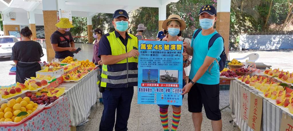 因近期疫情趨緩,天祥地區遊客增加,天祥派出所員警利用人潮聚集之機會,前往轄區風景區及停車場等人潮密集處,針對這次萬安演習向民眾宣導,告知應注意事項,請所有遊客錯開演習時段在外遊覽,可以待在旅店內或自行覓地躲藏,以免被警方管制禁行,因而發生耽誤旅程之紛爭,警方除了向遊客宣導外,員警也一家一家地拜訪轄區店家、飯店,說明28日的萬安演習活動管制規定,希望店家可以協助警方向民眾宣導,提醒他們萬安演習的時間及應注意事項,共同做好演習。