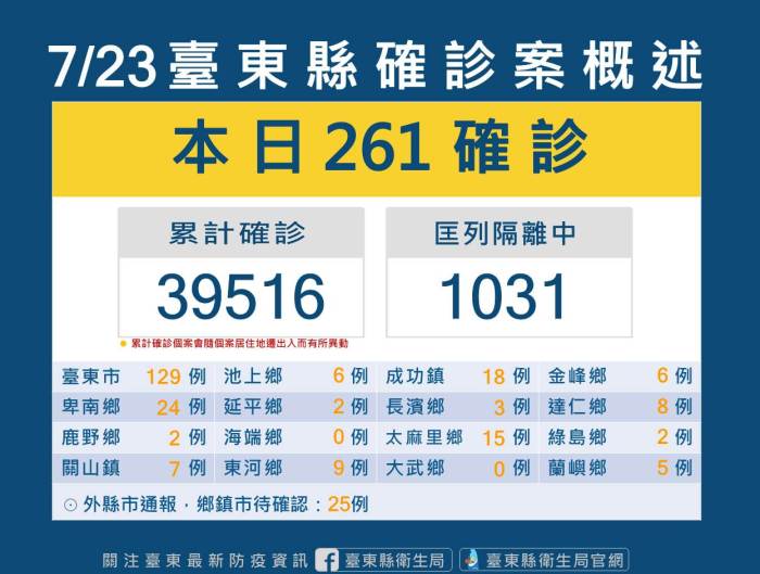 城鄉新聞 記者 姜嘉瑋/臺東報導 台東縣今(23)日新增261位確診者,236名民眾戶籍或居住地分在台東、25 … 繼續閱讀 台東今增261位確診案 衛生局呼籲家中6個月以上幼童儘早接種 建立幼兒免疫力 降低染疫後造成MIS-C風險