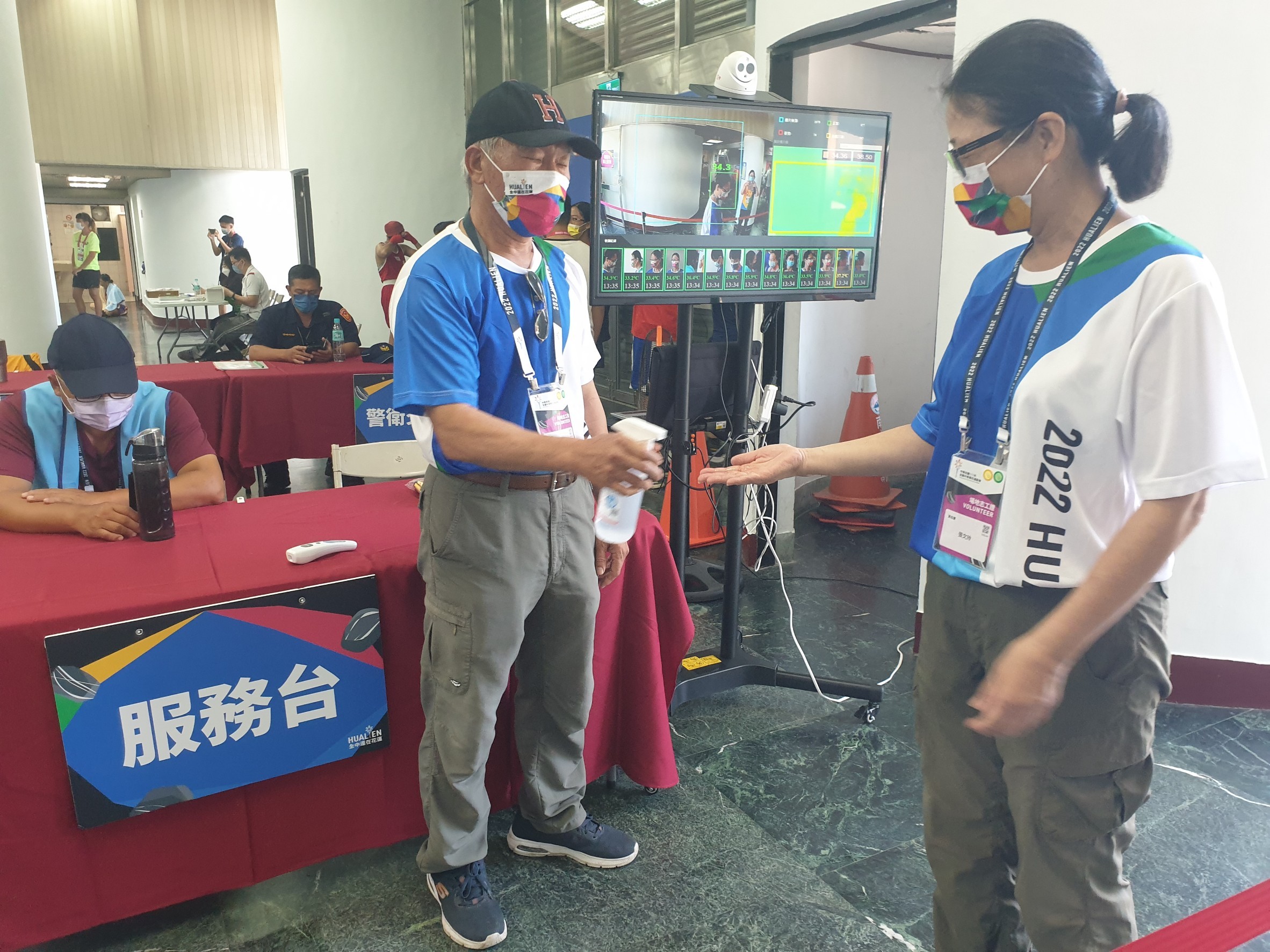 這次拳擊場地(花蓮縣立中正體育館)的場地經理學校為鑄強國小,場地經理孫東志校長表示,防疫及賽事服務是最基本的,任何合理內的使命都要盡全力達成,尤其拳擊賽最特別的是早上7時30分選手們就要進行過磅,接著是熱身運動和練習,一直到中午以後才開始比賽,表訂賽程是到晚上10時,賽程很長,是個耐力賽,不管在燈光、空調、膳食、醫師、護理師人員配置等都需安排妥當,讓整個賽程圓滿成功。