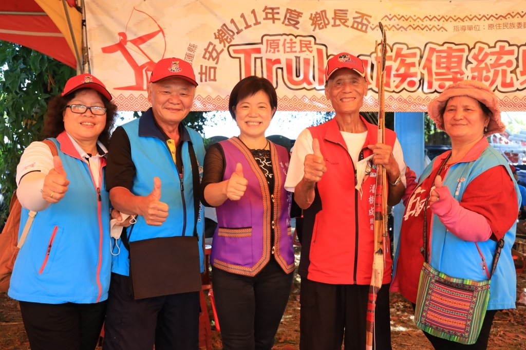「吉安鄉長盃Truku族傳統射箭比賽」為吉安鄉年度盛會,23日上午於南華村快樂農場盛大展開,社男團體組共計54隊競技、社女團體組16隊巾幗交鋒、國中個人組26位選手參賽,現場除吸引花蓮縣13鄉鎮市好手齊聚一堂之外,更有來自全國12個隊伍前來以箭會友,展現吉安鄉運動文化推展的強力動能,今年比賽項目加碼18歲以下選手參賽,團體組冠軍獎金也加碼至6000元,更凸顯鄉長游淑貞傳承部落技能與培育運動專才向下扎根的有效作為,全場400餘位選手頂著烈日無不使出渾身解數爭取最佳成績,也讓前來觀賽的傅崐萁立委、黃金發副主席、張德奇總幹事、陳進德代表、村長、頭目們一起展開公開競比,鄉長游淑貞更以二箭18分獲得滿堂喝采。 許多參賽族人興奮的表示,鄉長盃Truku族傳統射箭賽早已成為享譽全國的文化賽事活動,每年最期待到訪吉安鄉參加比賽,部落熱情族人就像自己親近的家人,就像回娘家一樣親切,大家不止於射箭技術上相互競技交流、切磋,熟悉的母語對談也是在外縣市都會區上班的族人難能感受到的溫暖,希望鄉長能年年持續辦理太魯閣族年度重要的賽事活動,讓族群文化賽事可以在全國發光發熱。