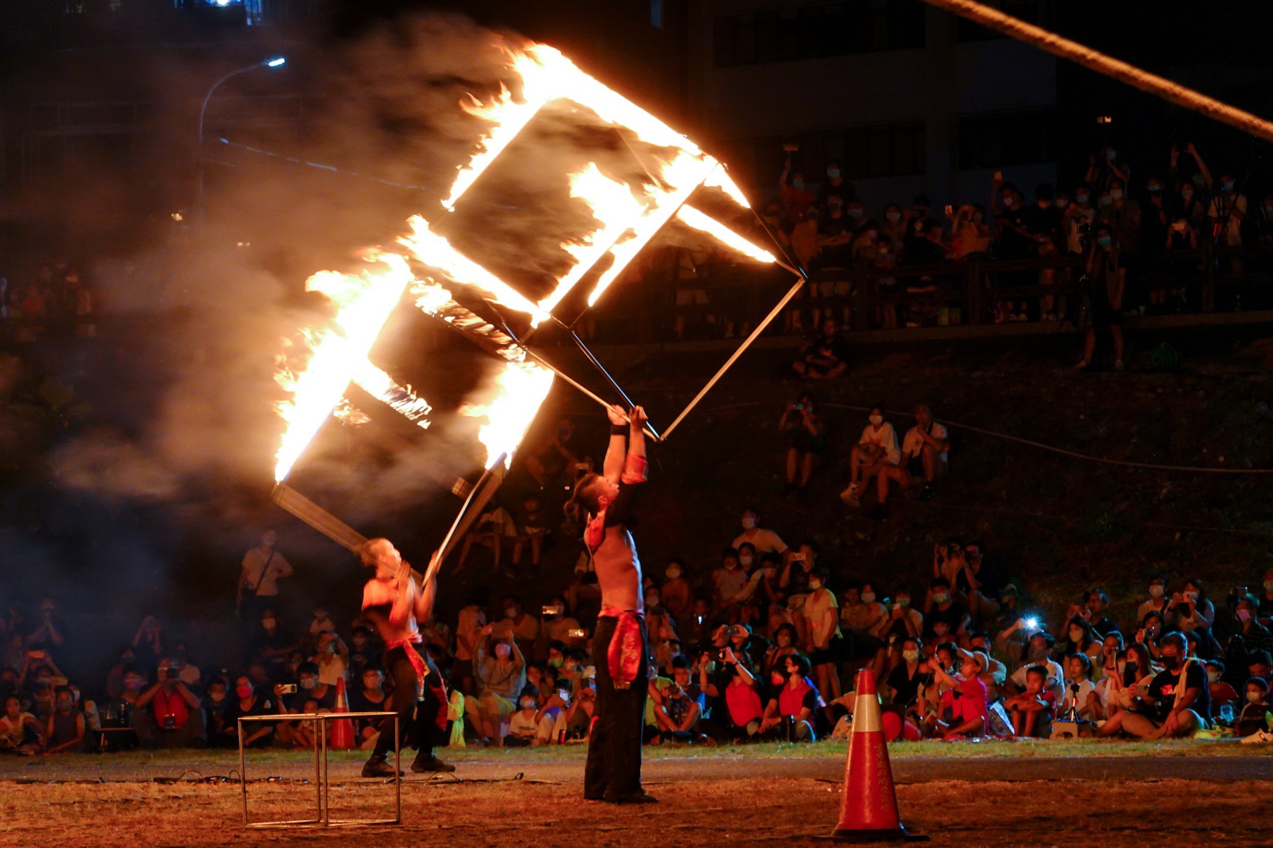7/22晚上在勇男橋旁第二停車場登場「知本溫泉區光雕音樂會」,由2018年貢寮海洋音樂祭海洋大賞得主 「MAFANA樂團」精彩開場,知本國中「大地之舞原舞團」帶來精采演出,來自加拿大的小老虎球、可愛的全聯福利熊球、臺東球、南瓜球、彩虹球帶來光雕秀,五顆熱氣球隨音樂節奏在夜空中綻放光芒,點綴知本夏夜,堤防、飯店陽台擠滿球迷搶拍熱氣球風采。壓軸演出由「Coming True 即將成真火舞團」帶來「火裙圓舞曲」,三位舞者旋轉火焰立方體搭配熱氣球噴火演出,現場觀眾驚呼連連。