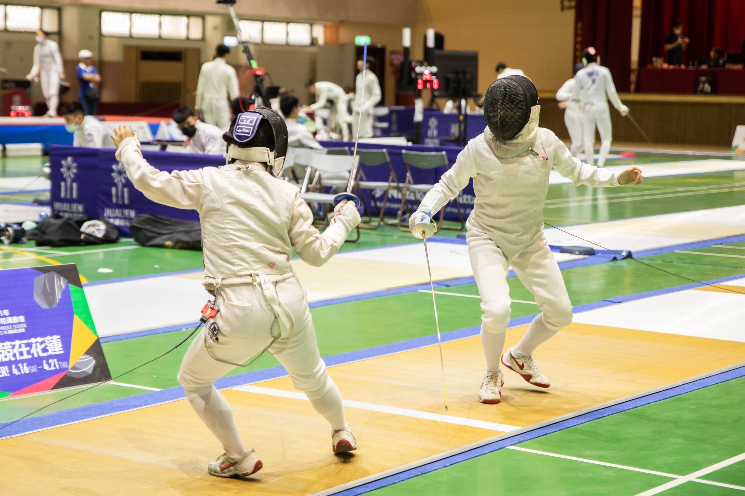 擊劍運動是由西方國家決鬥發展而成,因劍種的不同,分為鈍劍、銳劍、軍刀三種。鈍劍是擊劍運動中最基本的一種;銳劍需要更多技巧性與準確性;軍刀則速度最快。今日進行國男組、高女組個人鈍劍及國女組、高男組個人鋭劍決賽,由臺北市先取得3金5銅。