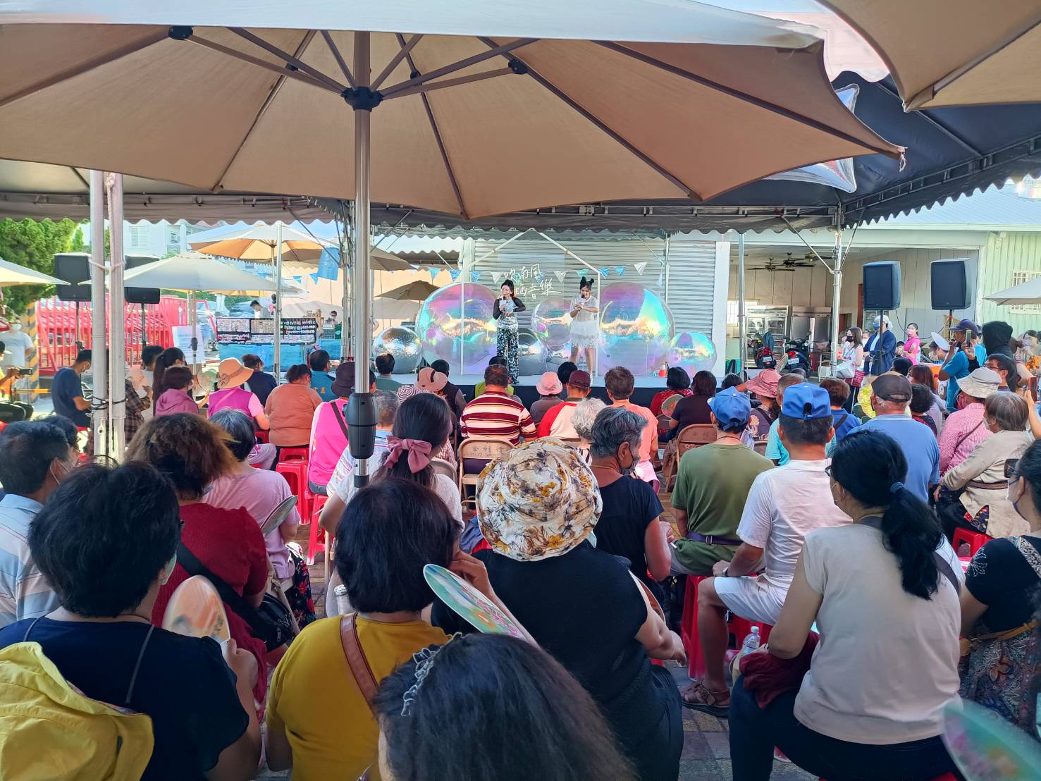 「2022吹南風晒音樂」年度系列活動第4場,首次移師卑南鄉太平文衡殿廟埕,7/23下午熱鬧登場,鄭崗山議員、郭宗益議員、陳銘風議員、卑南鄉長許文獻、縣農會楊招信理事長等多位貴賓到場與鄉親同樂,現場吸引逾七百位民眾,將文衡殿內外擠得滿滿,王彩樺及曾治豪以詼諧逗趣的表演,熱情回應鄉親,王彩樺誠意十足還自備小禮物(口罩和福虎小公仔)送給現場民眾,大家直呼讚,還有文創市集擺攤,各式各樣的臺東特色選物,讓大家有得逛又很Chill。