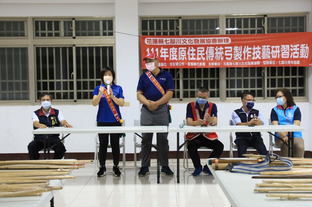 弓箭製作職人何明義表示,過去製作長弓的素材多以黑皮樹、黃皮樹為主,長輩在山林裡狩獵時,經常使用生長在河邊的黑皮樹,因為彈性佳,大多用來吊山豬等獵物使用。但由於早期製弓常用的七里香素材現已不好取得,因此,這次特別創新使用榕樹氣根來製作,雖然使用年限沒有七里香耐用,但是取得便利、彈性佳,也是製弓優選材料之一。學員們都相當用心認真,期待大家都能投入弓箭製作,一起傳揚祖先的傳統技藝。 吉安鄉長游淑貞感謝七腳川部落陳春生頭目極盡用心,聘任專業指導老師全程細心教學,讓歷史技法即將消逝的傳統狩獵與製弓技能再現,更感動製弓老師的創意巧思,運用常見榕樹氣根來製作,讓學員們在課程中不僅可以傳楊技能,更能從中了解狩獵相關知識和祖先智慧發想。