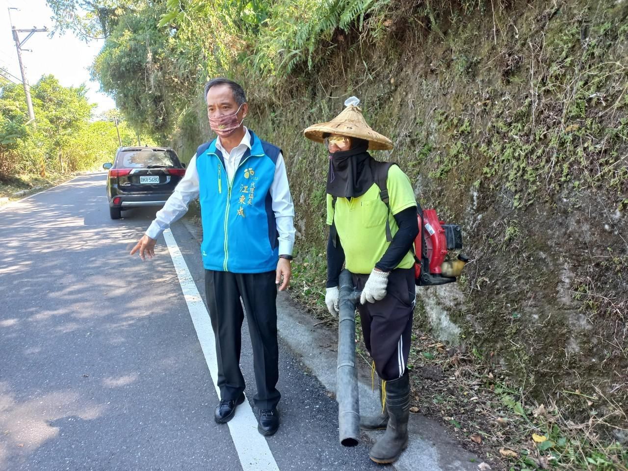 昨(25)日上午,玉里鎮長江東成前往玉里鎮赤科山道路,向為了迎接即將到來的赤科山金針花季,而辛勤清潔賞花動線的清潔隊員加油打氣。江鎮長表示,花季即將到來,不論是交通管制抑或環境維護等各方面,公所都是正如火如荼地執行中,感謝各隊員與公所同仁的努力,相信定能為民眾帶來熱烈又驚艷的花季開幕。