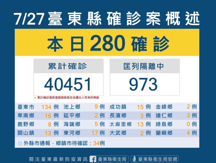 台東今新增280位確診者 衛生局呼籲民眾儘快完成完整疫苗接種並落實佩戴口罩