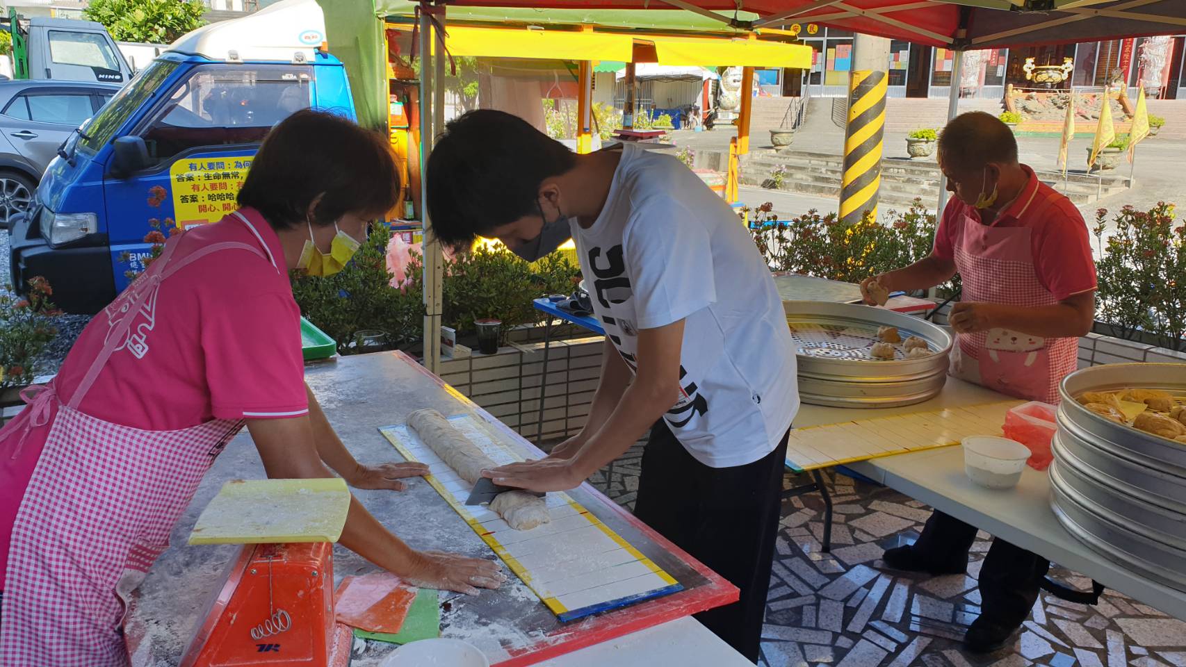 在多方努力下,玉里服務處已有1800粒的饅頭預購單,幸好饅頭夫婦們多了幾位小幫手,不只加快了製作饅頭的進度,期待能趕在日落以前完成一起這項訂單外,更有意義的是,受扶的高中、大專生在成長路上受許多人幫助,這一次他們頂著夏日豔陽,靠著自己的雙手和力量一起製作饅頭,也將對社會大眾的感恩揉進麵糰裡,回饋給一位善心人士。饅頭姊姊說「今天吃到饅頭的人很幸福,能夠吃到年輕的氣息。」雖然開放民眾預購饅頭數量已滿,但7/27仍可至玉里服務處前廣場購買,一起買饅頭做愛心。