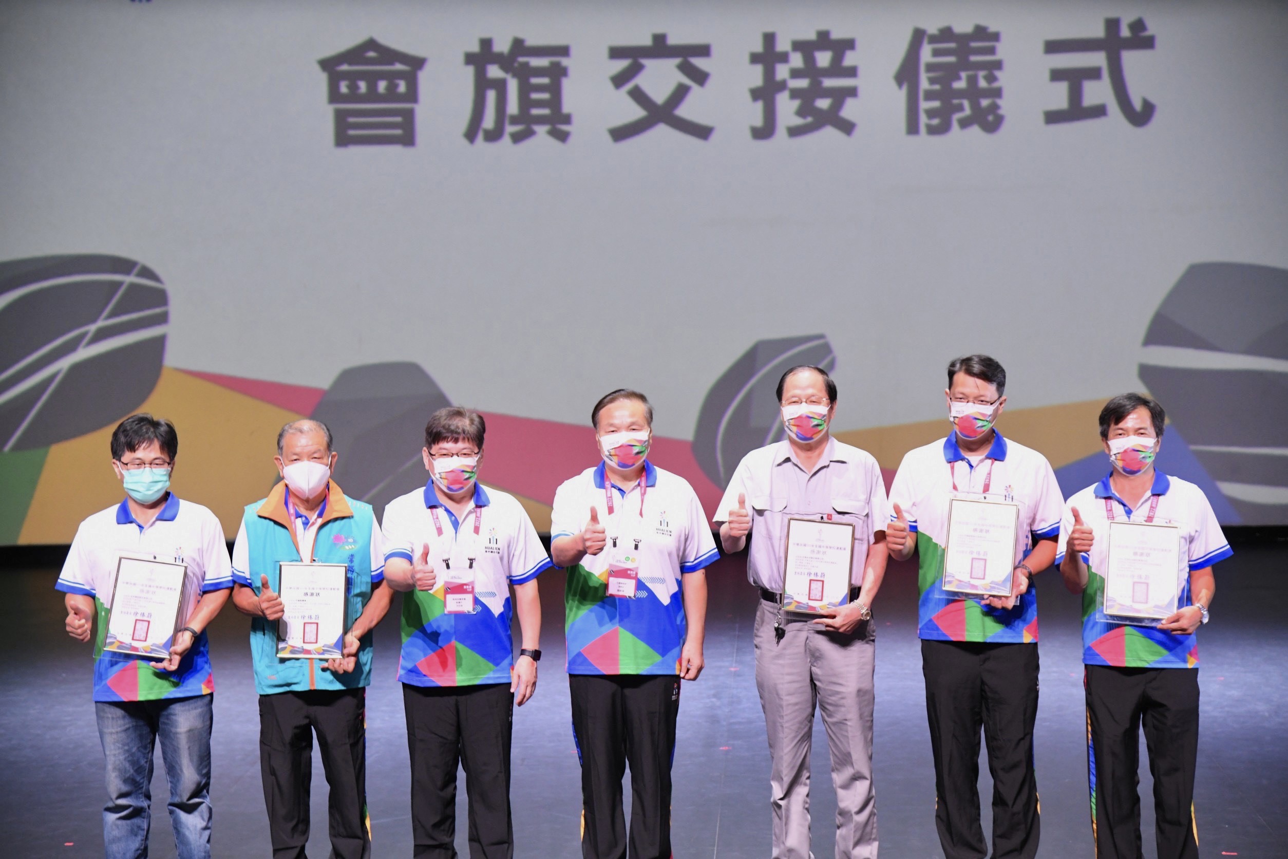 全中運大會會旗由體育署洪志昌副署長將會旗交接給下屆主辦單位新竹縣政府,象徵傳承全中運的精采、卓越與輝煌。新竹縣政府由楊文科縣長接下全中運會旗後,由新竹縣國中小聯合團隊《頭前》舞團帶來「《頭前》文化·科技·智慧城」精湛演出,為全中運大會會旗交接典禮儀式增添光彩。