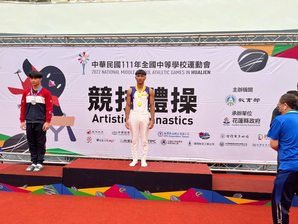 在花蓮縣辦理的111年全國中等學校運動會,因受疫情影響,賽程分階段辦理,於今(27)日圓滿落幕,台東縣代表隊今日在競技體操項目,由台東高中黃彥章帶領賓茂國中學弟們奮戰,結果摘下1金7銀1銅的佳績,為今年全中運代表隊畫下圓滿休止符,黃彥章在地板項目奪金,另在吊環等五個單項居第二,其中,最拿手的鞍馬不幸以0.034「銀」恨,相當可惜,累計共計獲得8面金牌、20面銀牌、26面銅牌的54面獎牌,東大體中高女組柔道在去年僅以團體季軍收場,今年將士用命再奪回冠軍錦標,大家相約「明年新竹縣見」。