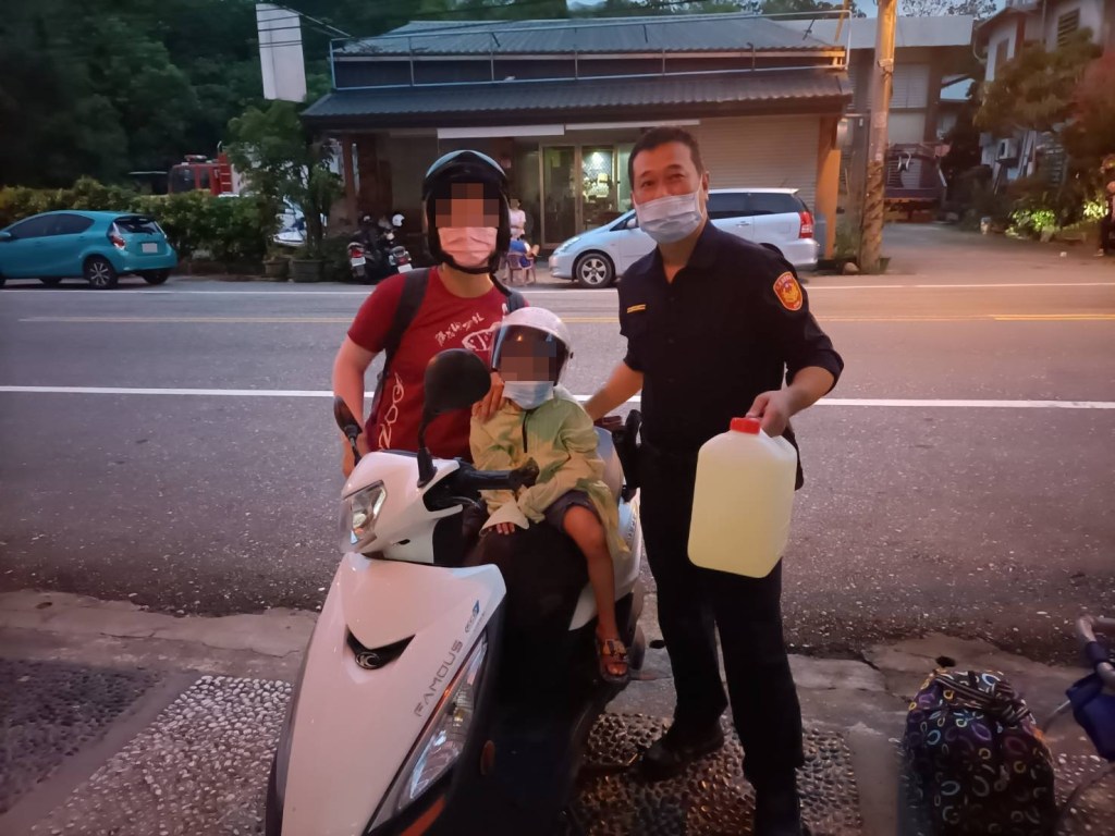 經了解該機車駕駛人陳姓媽媽(45歲)騎乘機車載其7歲之子,當日上午從花蓮市出發沿花東海岸線一路南下至港口村,沿途觀光遊玩後返回花蓮市區,傍晚行經豐濱才發現機車儀錶板之油針探底,油料即將耗盡,經所長隨即向陳姓駕駛人說明最近一處加油站是位於壽豐鄉的水璉加油站,單程距離約有26公里遠,車程約半小時,陳女機車恐未抵達加油站就已將油料耗盡,所幸所長平時有備用油料的習慣,隨即以備用油料加注該機車,陳姓女騎士十分感謝所長的即時協助,頻頻道謝後騎上機車前往水璉加油站補滿油料。
